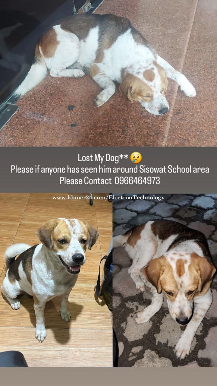 ***ដំណឹងបាត់ឆ្កែ🐕*** យើងខ្ញុំបានបាត់ឆ្កែ🐕 ពូជBeagle ភិនភាគដូចរូបខាងក្រោមបានបាត់នៅម្ដុំ វិទ្យាល័យព្រះសីសុវត្ថិ លើវិថីព្រះនរោត្តម (41) កែងវិថីសម្តេចព្រះធម្មលិខិត កែអ៊ុក (184) នៅយប់ថ្ងៃ31 ខែ10 ម៉ោង8យប់ បើបងប្អូនណាបាន ប្រទះឃើញ សូមទូរស័ព្ទមកលេខ 0966464xxxClick To Call | Telegram 📥https://t.me/0966464xxxClick To Call 🙏យើងខ្ញុំសូមអរគុណទុកជាមុន។