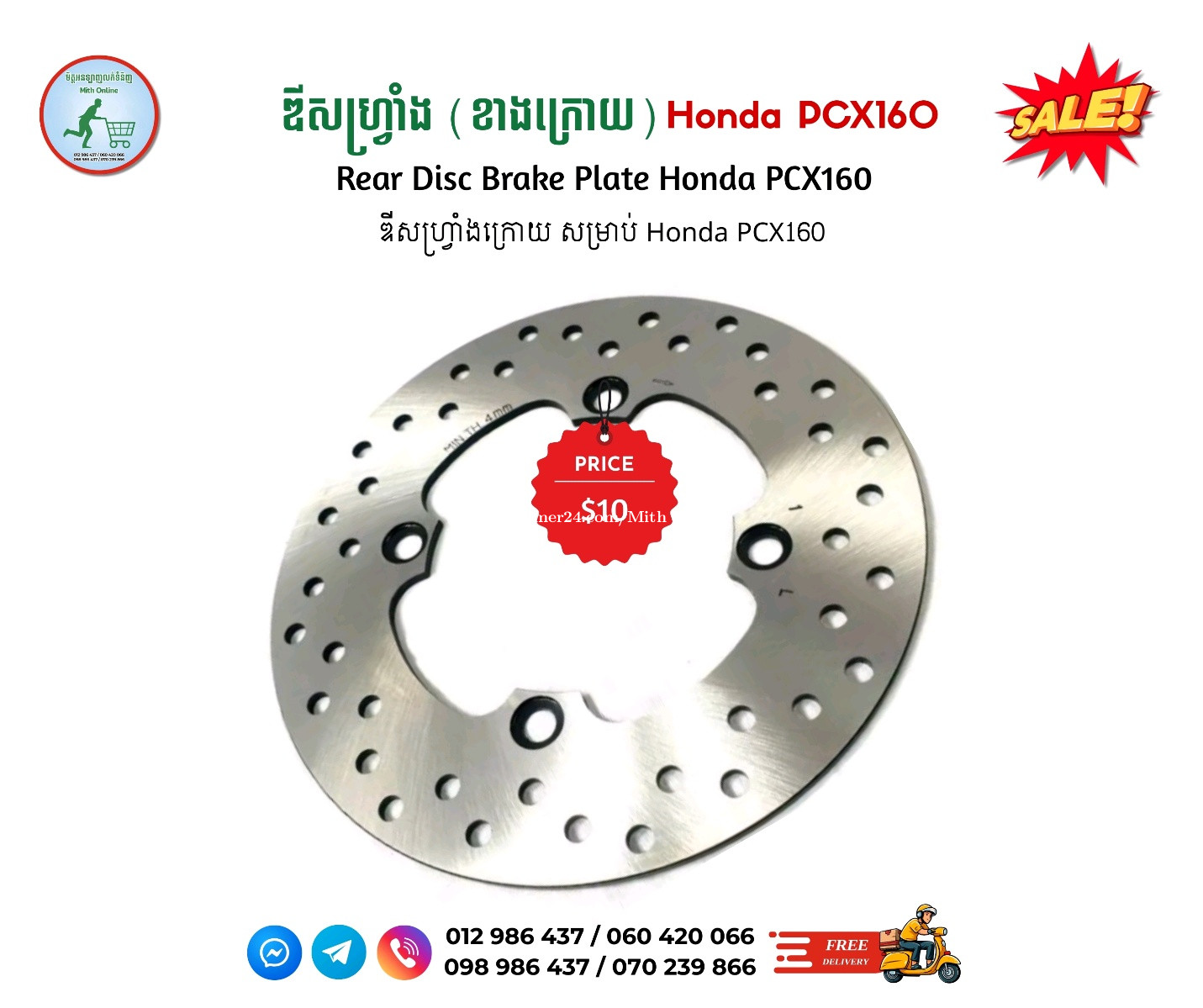 ឌីសហ្វ្រាំងខាងក្រោយ Rear disc brake plate for Honda PCX1602021xxxClick To Call3 💰 តម្លៃ $10 📦 ដឹកជញ្ជូនឥតគិតថ្លៃ Free Delivery ☎️012986xxxClick To Call / 060420xxxClick To Call ☎️098986xxxClick To Call