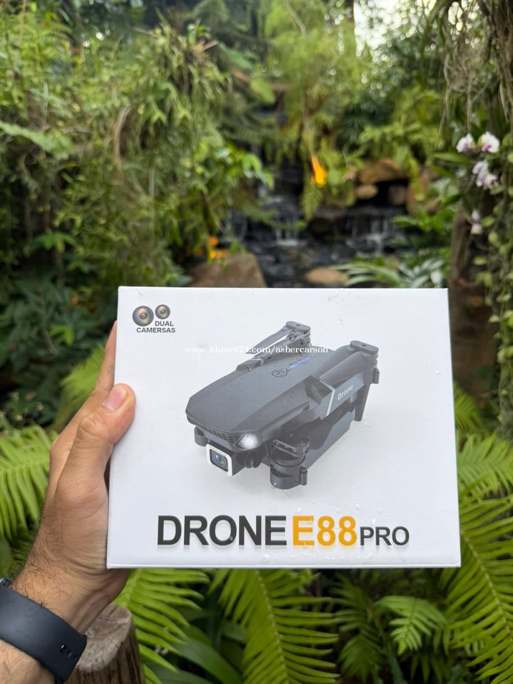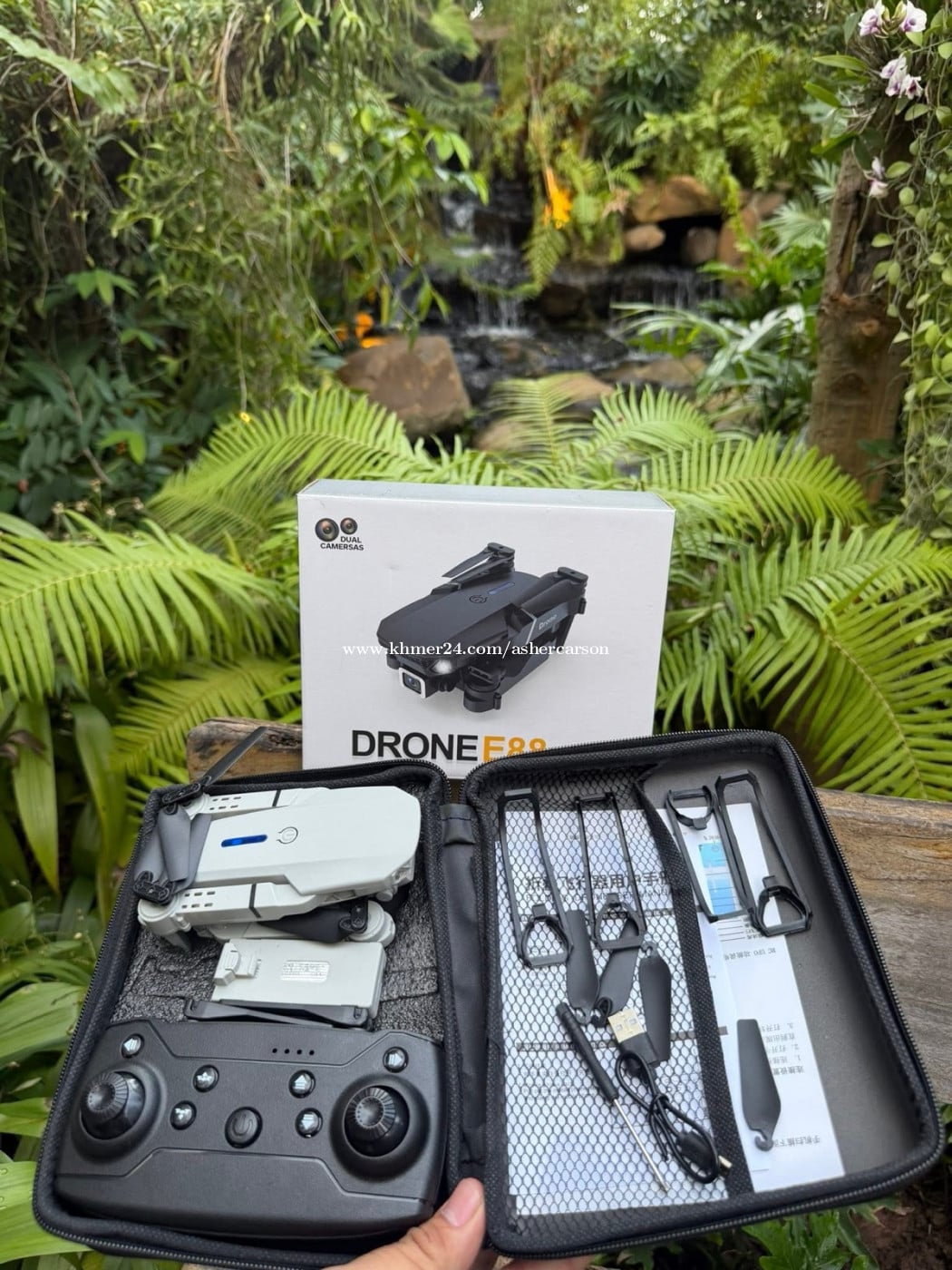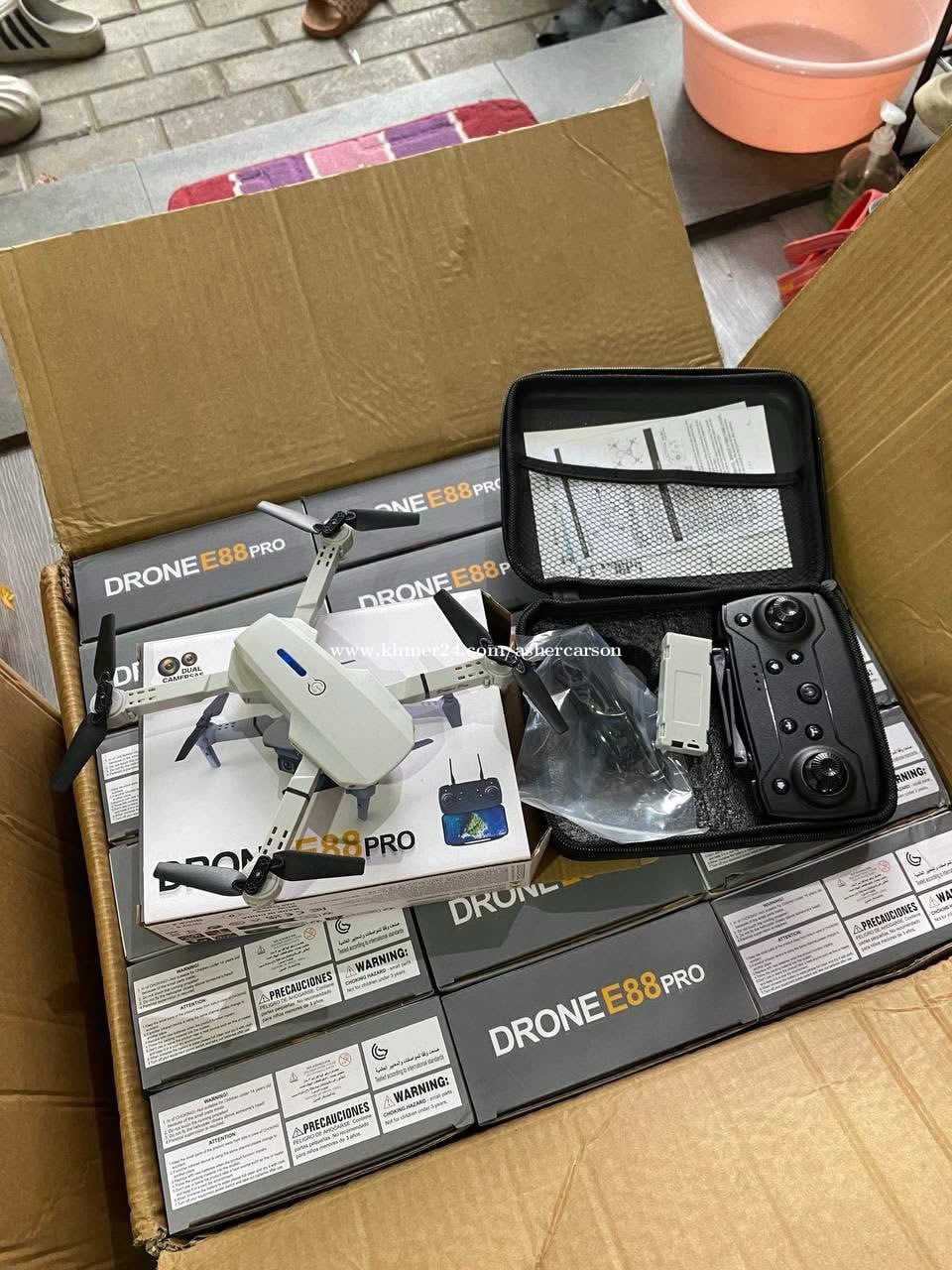 ឌ្រូនDrone E88តម្លៃ20$Free Delivery មាន2ពណ៌សនិងខ្មៅសំខាន់អាចដាក់Cameraបានហោះបានប្រវែង200មែត្រកម្ពស់50មែត្រមានស្តុកស្រាប់ម៉ូយៗ