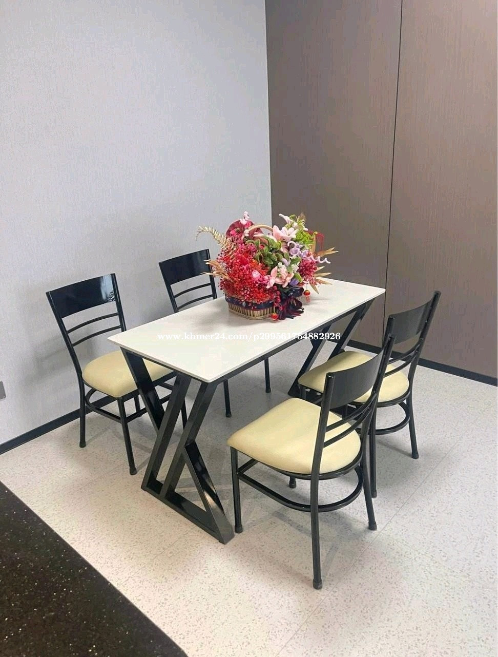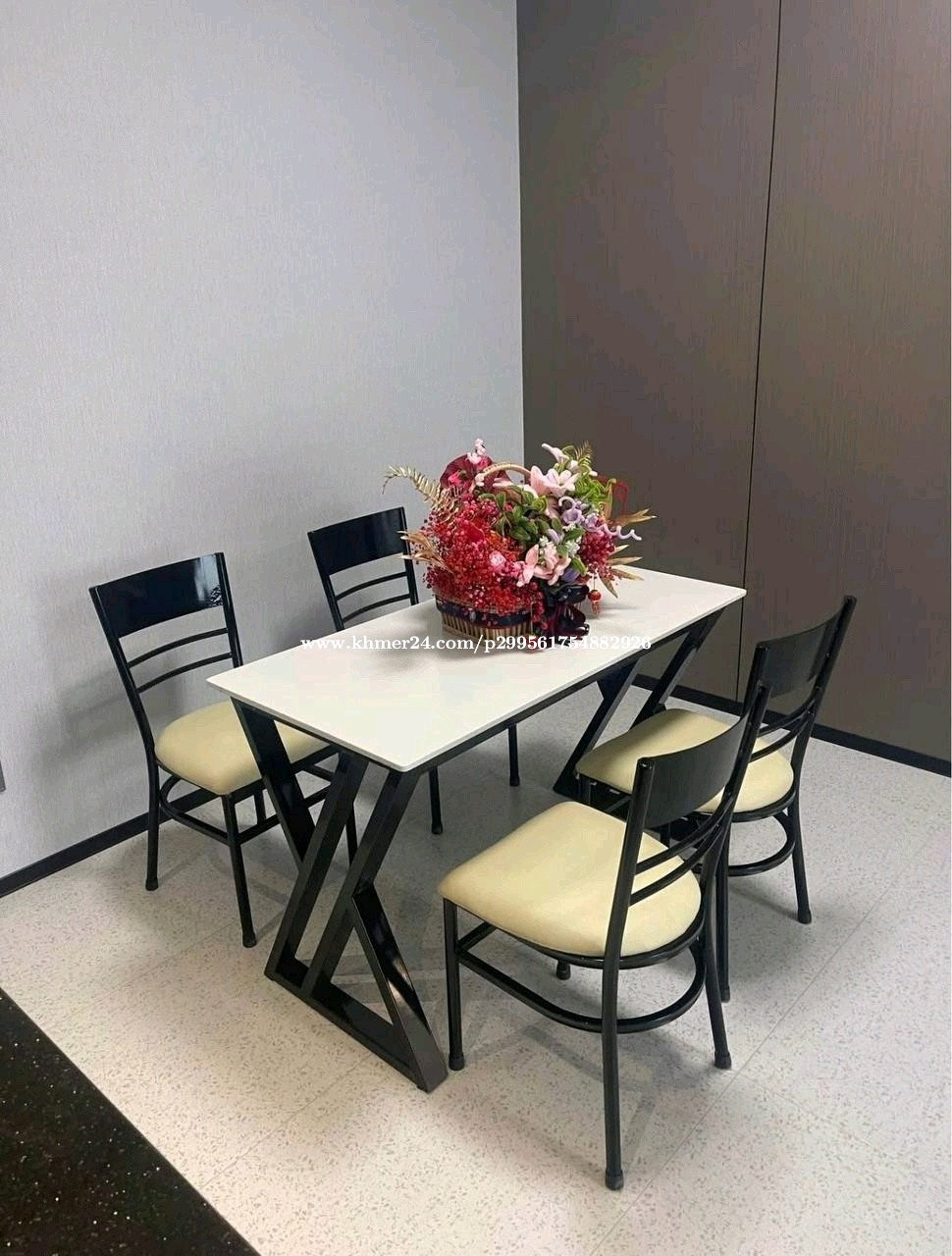 one set price 150$ table 60*120cm (marble and metal leg ) Dining chairs (metal frame) one 22$ Free delivery in phnom penh please contact us:@Povsreychan7777