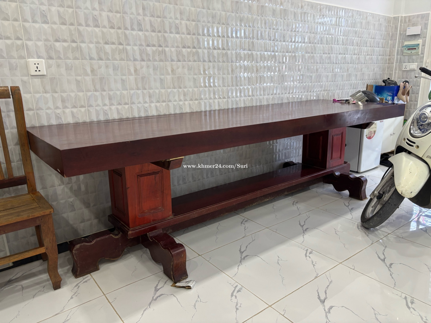 តុឈើគគីរ បណ្តោយ៣ម៉ែត្រ ទទឹង១ម៉ែត្រ កម្រាស់1តឹកពេញ លក់តម្លៃ600$ ថែមកៅអី ៥