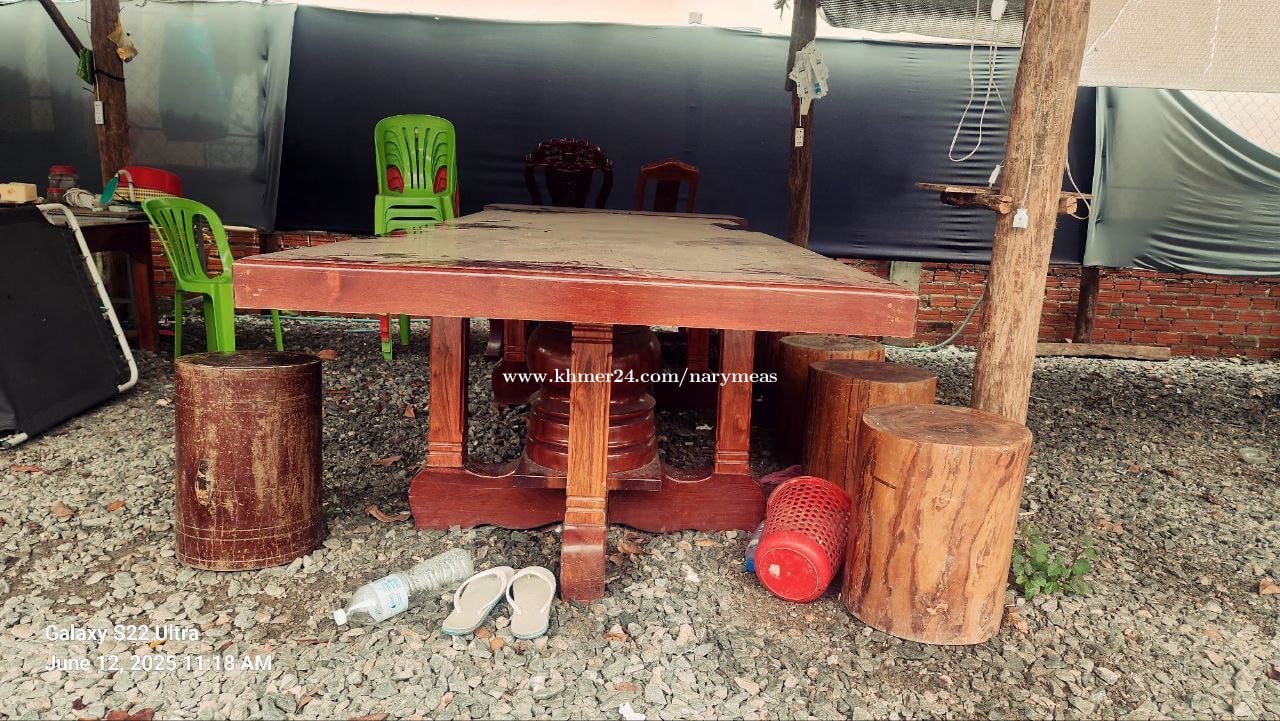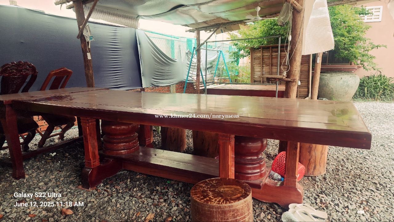 តុបាយ ឈើគគីរ បណ្តោយ៣ម៉ែត្រ ទទឹង១ម៉ែត្រ កម្រាស់១តឹក 600$ ថែមកៅអី ៥ តុបាយ ឈើសុក្រំ បណ្តោយ 3ម៉ែត្រ ទទឹង១.២ម៉ែត្រ កម្រាស់១តឹក 1600$ ថែមកៅអីមូល ៥ ដឹកជូនដល់ទីតាំង