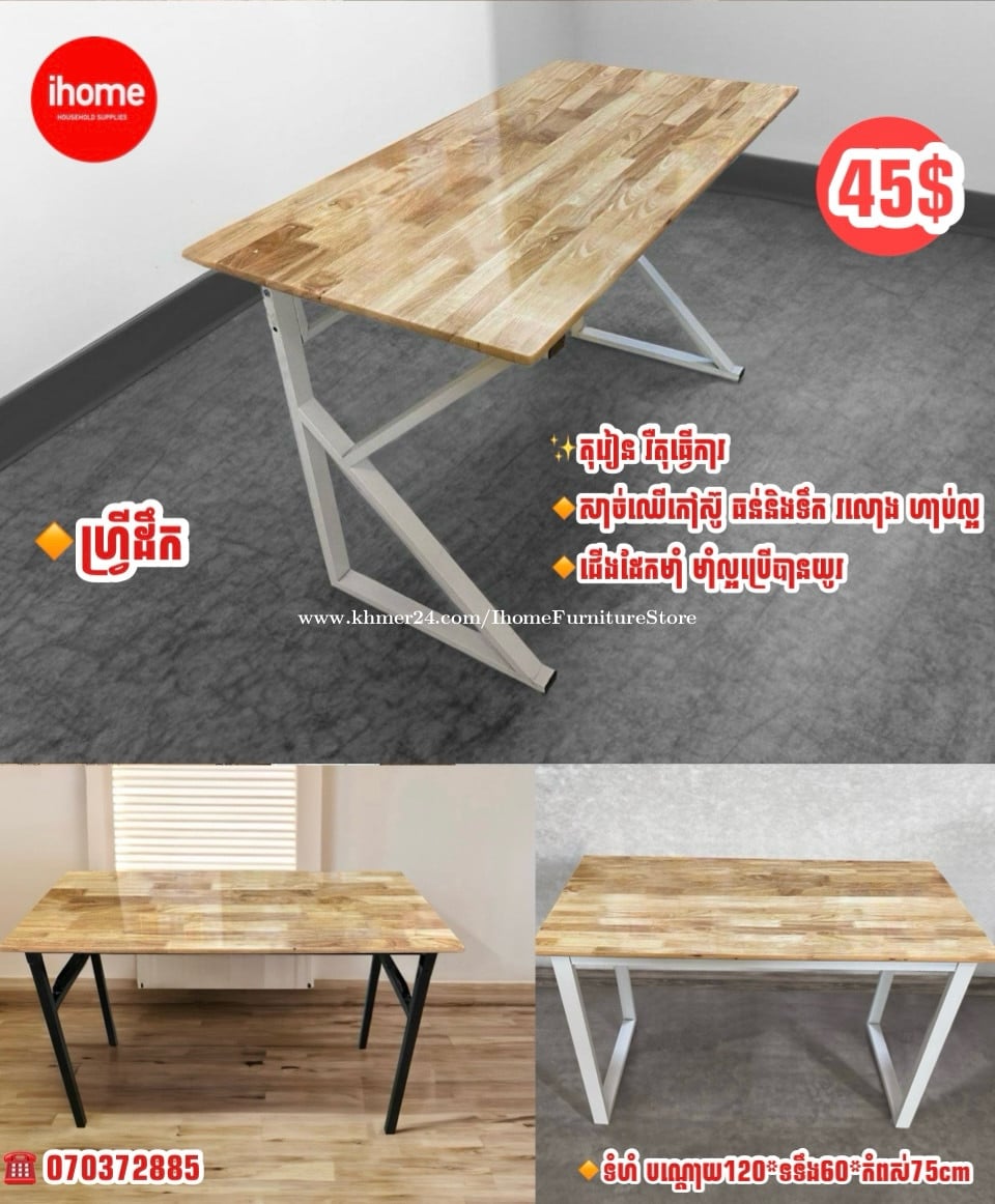 **តុសាច់ឈើ ស្អាតរលោងគុណភាពខ្ពស់ សំរាប់ធ្វើការ រឺរៀននៅតាមផ្ទះ 🛵 ដឹក និងតំឡើងដល់ទីតាំង ទូរទាំងប្រទេស ។ ទំហ៊ំសូមមើលនៅក្នងរូប ទំនាក់ទំនង៖ 070372xxxClick To Call អ្នកលក់៖ https://t.me/ChomKanha ចូលក្រុប៖https://t.me/ihomefurniture Facebook page: https://www.facebook.com/ihomefashion.kh