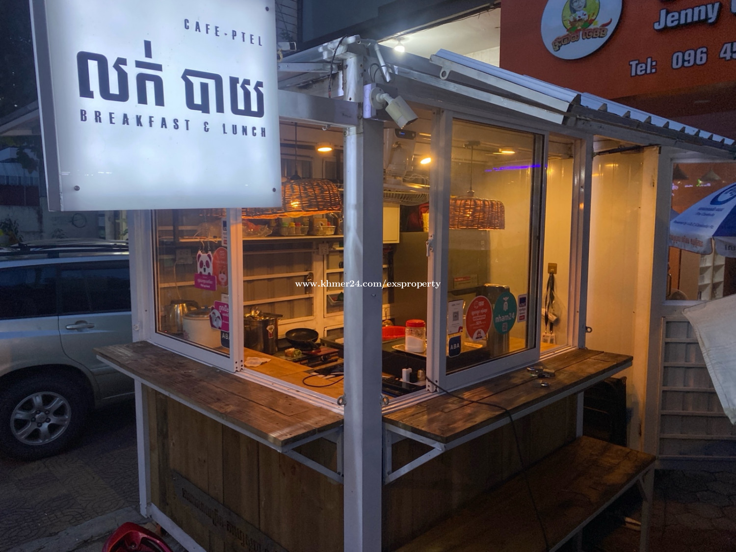 តូបកាហ្វេលក់ - កំពស់ 2.4m x ទទឹង 2m x បណ្តោយ 3.8m