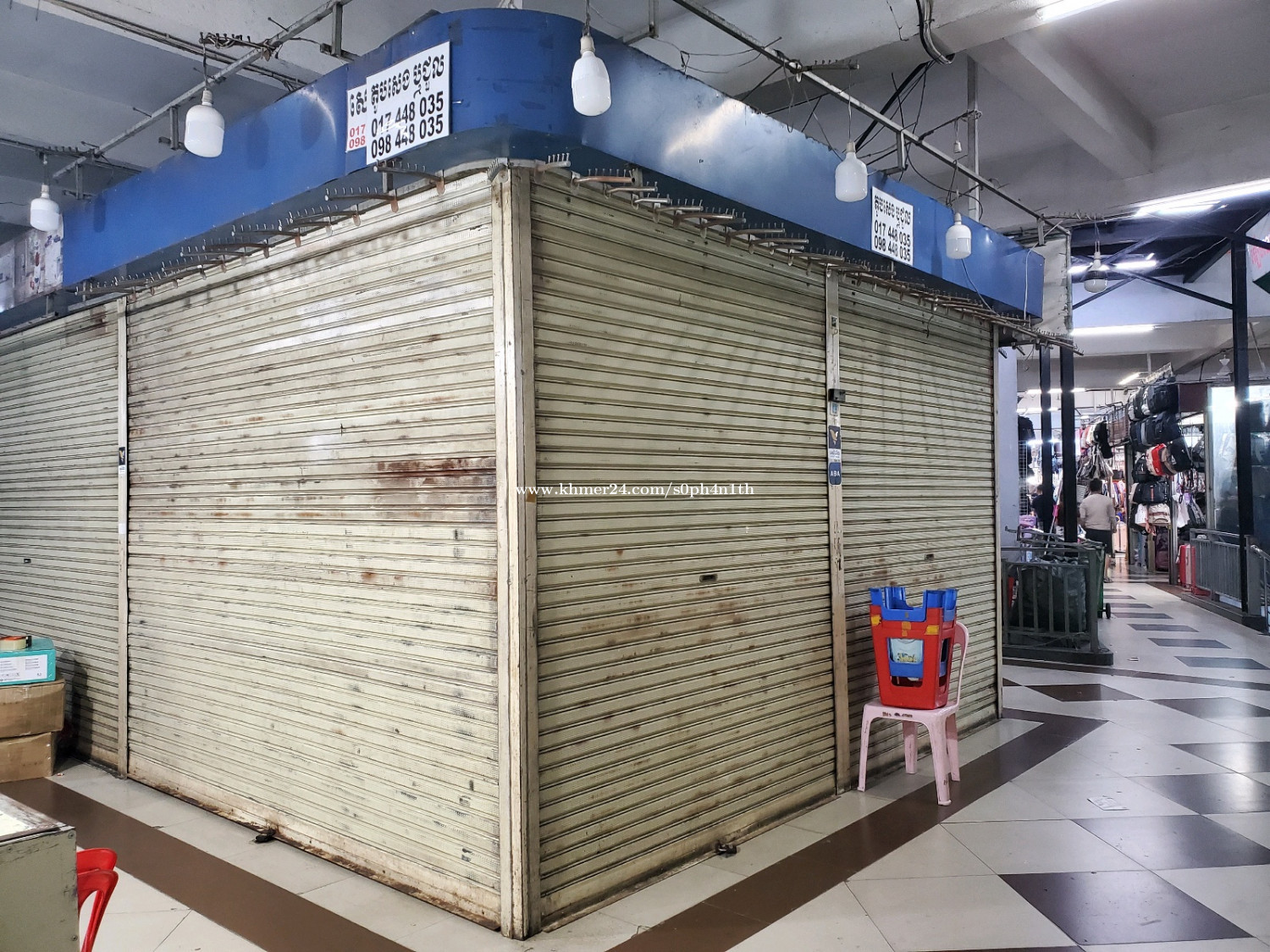 - តូបកែង ២ ជាប់គ្នា A12-12 A12-13 ជាន់ផ្ទាល់ដី - ជាប់ផ្លូវច្រកចូលគៀនផ្សារ និងច្រកឡើងពីជាន់ក្រោមដី - មានថ្នើរដាក់អីវ៉ាន់ ជាប់ជញ្ជាំង និងជុំវិញតូប. - តូបមួយតម្លៃ 30000$ ចរចាបាន - តូបទាំងពីរ 55000$ ចរចារបាន - លេខទាក់ទង 098231xxxClick To Call - តេលេក្រាម @ph4n1th 098231xxxClick To Call ❗មូលហេតុនៃការលក់: គ្រួសារផ្លាស់ទីលំនៅ ដូច្នេះយើងចង់លក់តូបនោះចេញ