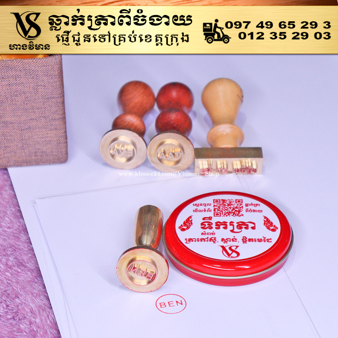 តើត្រាលោកអ្នកឆាប់ខូចមែនទេ? ការឆ្លាក់ត្រាស្ពាន់របស់ហាងវិមាន មានជម្រើសដងកាន់៤ប្រភេទ ដែលអាចជួយអាជីវកម្ម និងបុគ្គលប្រើប្រាស់បានយ៉ាងមានប្រសិទ្ធភាព។ ឆ្លាក់ត្រាពីចំងាយនិងផ្ញើជូនគ្រប់ខេត្តក្រុង។ សាកសួរឬកុម៉្មង់តាមMessenger៖ http://m.me/stampmaking Tel : 089318xxxClick To Call (Cellcard) / 0882461xxxClick To Call (Metfone) / 093728xxxClick To Call (Smart) ផ្ទះG21 ផ្លូវGoody សង្កាត់ទឹកថ្លា ខណ្ឌសែនសុខ រាជធានីភ្នំពេញ( ក្នុងបូរីនៃផ្សាររតនាផ្លាហ្សា1 ឬ ម្តុំស្ពានអាកាសផ្សារដីហ៊ុយ ) --------- #CopperStamp #NameStamp #Stamp ធ្វើត្រាស្ពាន់ ផលិតត្រាស្ពាន់ បោះត្រាស្ពាន់ ឆ្លាក់ត្រាស្ពាន់ បោះពុម្ពត្រាស្ពាន់ សាក់ត្រាស្ពាន់ ត្រាស្ពាន់ឯកជន ត្រាស្ពាន់ក្រុមហ៊ុន ត្រាស្ពាន់អត្តសញ្ញាណ ត្រាស្ពាន់គ្រប់ប្រភេទ រៀបចំត្រាស្ពាន់ សេវាធ្វើត្រាស្ពាន់ ត្រាស្ពាន់តាមការកំណត់ ចម្លងត្រាស្ពាន់ ត្រាស្ពាន់រហ័ស