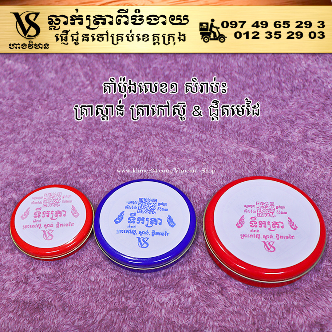 តើលោកអ្នកបានសាកល្បងប្រើតាំប៉ុងហាងវិមានឬនៅ? តាំប៉ុងគុណភាពលេខ១ ល្អសំរាប់ត្រាសាច់ស្ពាន់ ត្រាសាច់កៅស៊ូ និងផ្តិតមេដៃ។ ចេញអក្សរច្បាស់ ដឹតល្អលើក្រដាស បើប្រើសំរាប់ផ្តិតមេដៃវិញគឺចេញក្រយ៉ៅម្រាមដៃយ៉ាងច្បាស់។ សូមទស្សនាវីដេអូ៖ https://www.facebook.com/stampmaking/videos/1795990757693960/ ឆ្លាក់ត្រាពីចំងាយនិងផ្ញើជូនគ្រប់ខេត្តក្រុង។ សាកសួរឬកុម៉្មង់តាមMessenger៖ http://m.me/stampmaking Tel : 089318xxxClick To Call (Cellcard) / 0882461xxxClick To Call (Metfone) / 093728xxxClick To Call (Smart) ផ្ទះG21 ផ្លូវGoody សង្កាត់ទឹកថ្លា ខណ្ឌសែនសុខ រាជធានីភ្នំពេញ( ក្នុងបូរីនៃផ្សាររតនាផ្លាហ្សា1 ឬ ម្តុំស្ពានអាកាសផ្សារដីហ៊ុយ ) #InkPad #Pad #StampPad