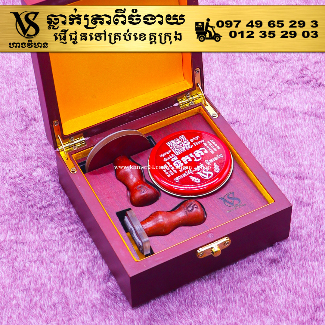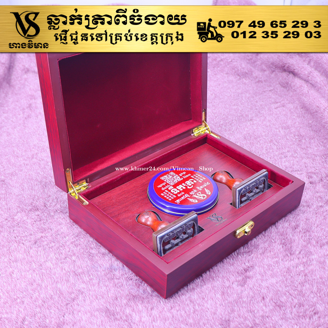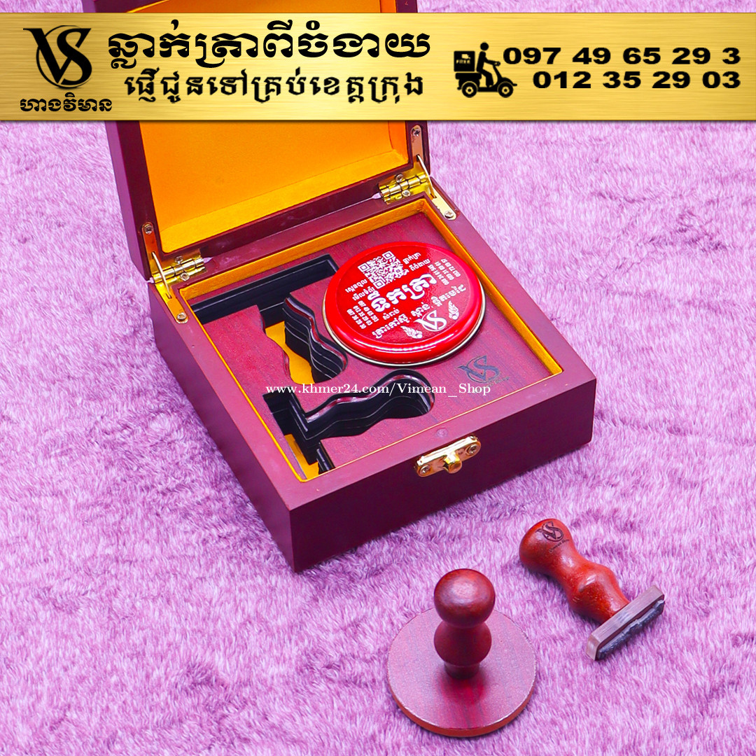 តើអ្នកកំពុងស្វែងរកឈុតត្រាសម្រាប់ជូនភ្ញៀវលំដាប់ខ្ពស់មែនទេ? ឈុតត្រាដ៏ប្រណិតនេះរចនាឡើងយ៉ាងសាមញ្ញ ប៉ុន្តែបំពេញដោយសោភ័ណភាព ទាក់ទាញពេលដាក់លើតុធ្វើការ។ វាមានប្រអប់ឈើស្អាត សមរម្យសម្រាប់តាំង ហើយរួមមានបន្ទះទឹកត្រាគុណភាពខ្ពស់ សមរម្យសម្រាប់ត្រាកៅស៊ូ និងត្រាផលិតពីស្ពាន់ ដែលអាចបោះបានច្បាស់។ ឆ្លាក់ត្រាពីចំងាយនិងផ្ញើជូនគ្រប់ខេត្តក្រុង សាកសួរឬកុម៉្មង់តាមMessenger៖ http://m.me/stampmaking Tel : 089318xxxClick To Call (Cellcard) / 0882461xxxClick To Call (Metfone) / 093728xxxClick To Call (Smart) ផ្ទះG21 ផ្លូវGoody សង្កាត់ទឹកថ្លា ខណ្ឌសែនសុខ រាជធានីភ្នំពេញ( ក្នុងបូរីនៃផ្សាររតនាផ្លាហ្សា1 ឬ ម្តុំស្ពានអាកាសផ្សារដីហ៊ុយ ) ----------- #ត្រាក្រុមហ៊ុន #ត្រាមេធាវី #ត្រាវត្ត ឆ្លាក់ត្រាឈុតVIP ត្រាឈុតVIP ធ្វើត្រាឈុតVIP ផលិតត្រាឈុតVIP បោះត្រាឈុតVIP ត្រាឈុតVIPក្រុមហ៊ុនត្រាឈុតVIPឯកជន ត្រាឈុតVIPគ្រប់ប្រភេទ ត្រាឈុតVIPអត្តសញ្ញាណ សេវាឆ្លាក់ត្រាឈុតVIP