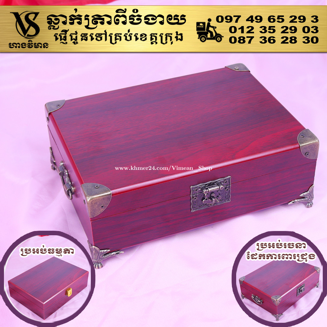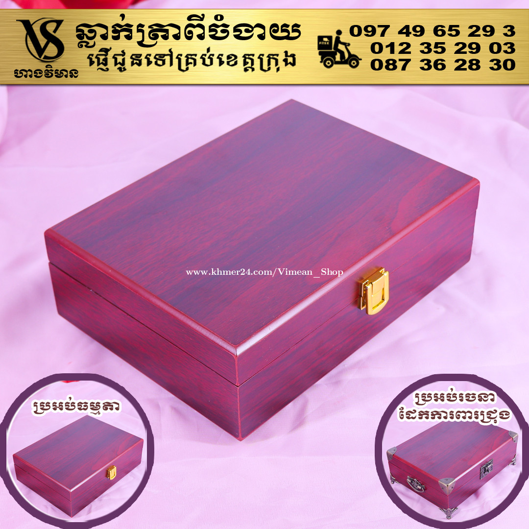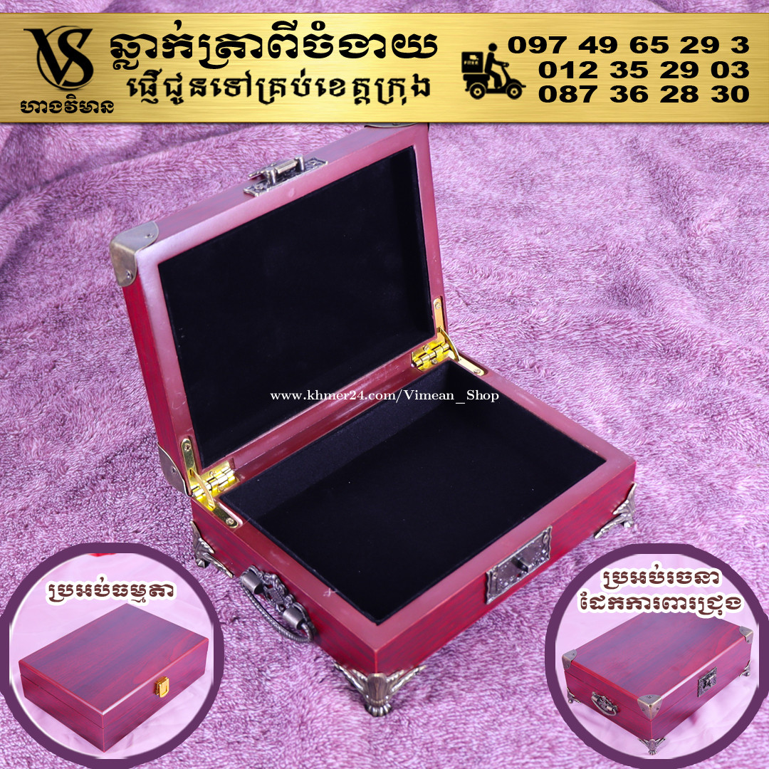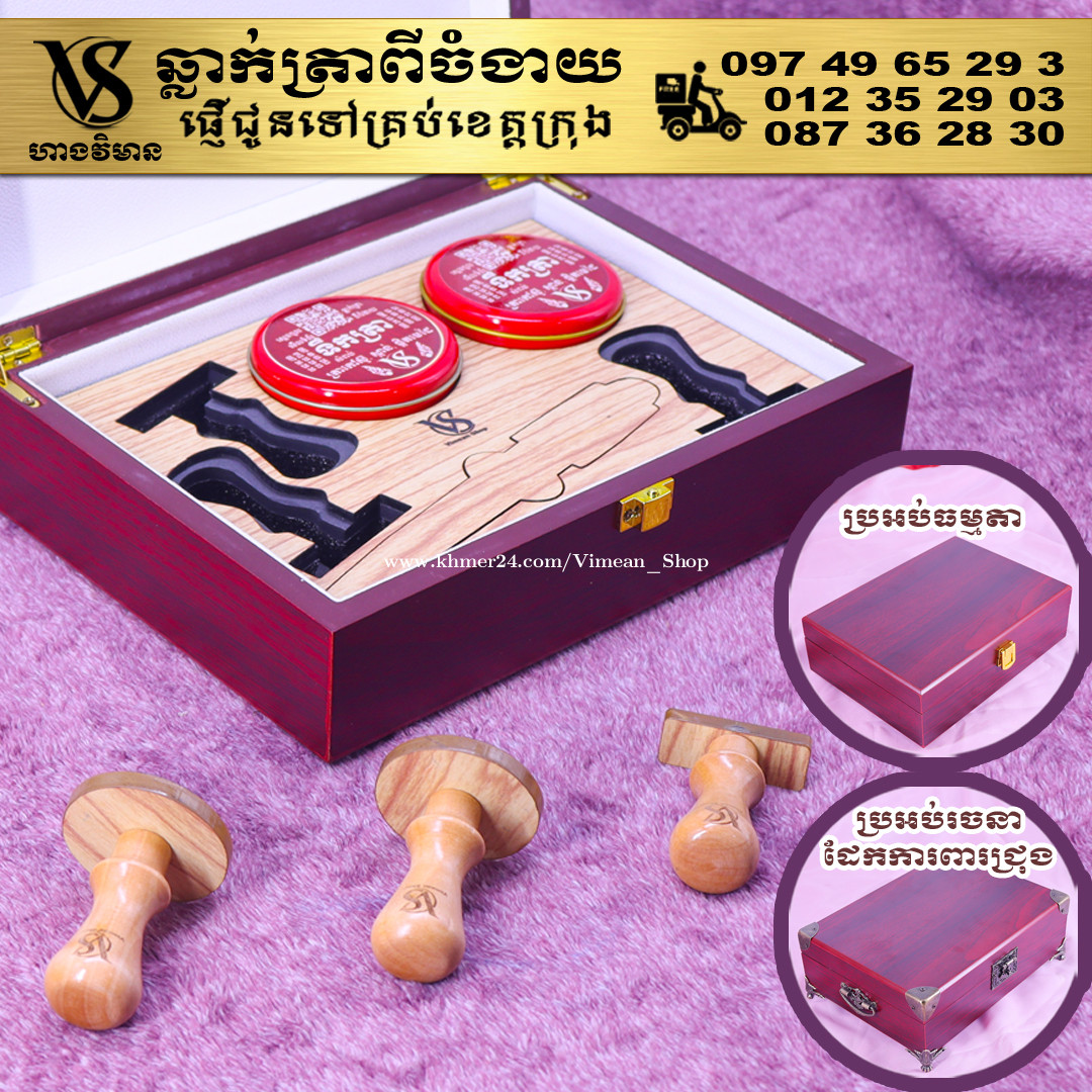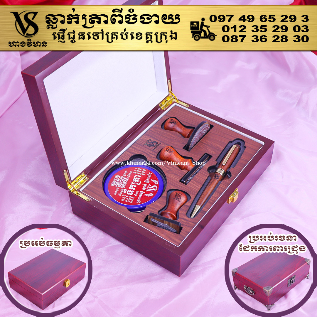 ពេលត្រូវការបោះត្រាម្តងៗ ពិបាករកត្រាមែនទេ? ដោយសារវានៅរប៉ាត់រប៉ាយ ជូនកាលរកត្រាឃើញ តែបាត់តាំប៉ុងមែនទេ? ឆ្លាក់ត្រាមួយឈុត មានប្រអប់ទុកដាក់ត្រានិងតាំប៉ុង។ ទាញមកគឺបោះត្រាបានតែម្តង។ ឈុតត្រាដ៏ប្រណិតនេះរចនាឡើងយ៉ាងសាមញ្ញ ប៉ុន្តែបំពេញដោយសោភ័ណភាព ទាក់ទាញពេលដាក់លើតុធ្វើការ។ វាមានប្រអប់ឈើស្អាត សមរម្យសម្រាប់តាំង ហើយរួមមានតាំប៉ុងគុណភាពខ្ពស់ សមរម្យសម្រាប់ត្រាកៅស៊ូ និងសាច់ត្រាស្ពាន់ ដែលអាចបោះបានយ៉ាងច្បាស់។ ឆ្លាក់ត្រាពីចំងាយនិងផ្ញើជូនគ្រប់ខេត្តក្រុង សាកសួរឬកុម៉្មង់តាមMessenger៖ http://m.me/stampmaking Tel : 089318xxxClick To Call (Cellcard) / 0882461xxxClick To Call (Metfone) / 093728xxxClick To Call (Smart) ផ្ទះG21 ផ្លូវGoody សង្កាត់ទឹកថ្លា ខណ្ឌសែនសុខ រាជធានីភ្នំពេញ( ក្នុងបូរីនៃផ្សាររតនាផ្លាហ្សា1 ឬ ម្តុំស្ពានអាកាសផ្សារដីហ៊ុយ ) #ត្រាក្រុមហ៊ុន #ត្រាមេធាវី #ត្រាវត្ត