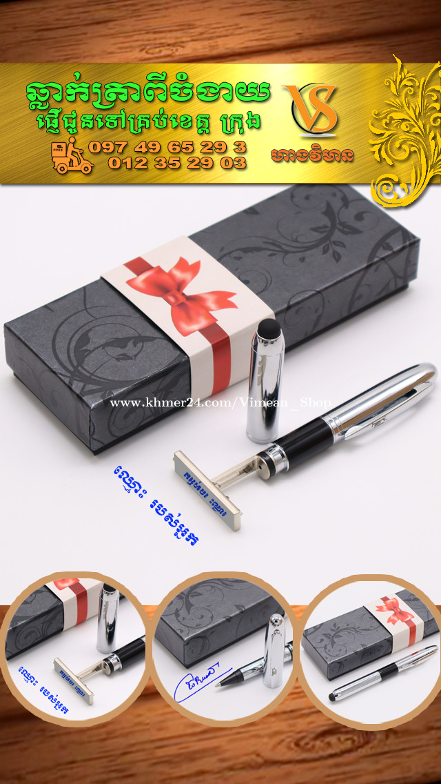 ត្រាប៉ិកផលិតផលអាឡឺម៉ង់គុណភាពខ្ពស់ ប្រើបានយូរអង្វែង មាន២មុខងារ៖ ជាប៉ិក ជាត្រា។ ឆ្លាក់ត្រាពីចំងាយនិងផ្ញើជូនគ្រប់ខេត្តក្រុង។ សាកសួរឬកុម៉្មង់តាមMessenger៖ http://m.me/stampmaking Tel : 089318xxxClick To Call (Cellcard) / 0882461xxxClick To Call (Metfone) / 093728xxxClick To Call (Smart) ផ្ទះG21 ផ្លូវGoody សង្កាត់ទឹកថ្លា ខណ្ឌសែនសុខ រាជធានីភ្នំពេញ( ក្នុងបូរីនៃផ្សាររតនាផ្លាហ្សា1 ឬ ម្តុំស្ពានអាកាសផ្សារដីហ៊ុយ ) #heri #pen #multipurposepen ធ្វើត្រាប៊ិក ត្រាប៊ិក បោះត្រាប៊ិក ផលិតត្រាប៊ិក ឆ្លាក់ត្រាប៊ិក ត្រាប៊ិកឯកជន ត្រាប៊ិកក្រុមហ៊ុន ត្រាប៊ិកគ្រប់ប្រភេទ សេវាធ្វើត្រាប៊ិក ត្រាប៊ិកអត្តសញ្ញាណ