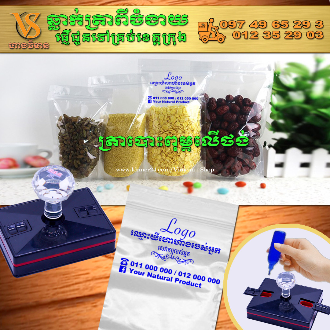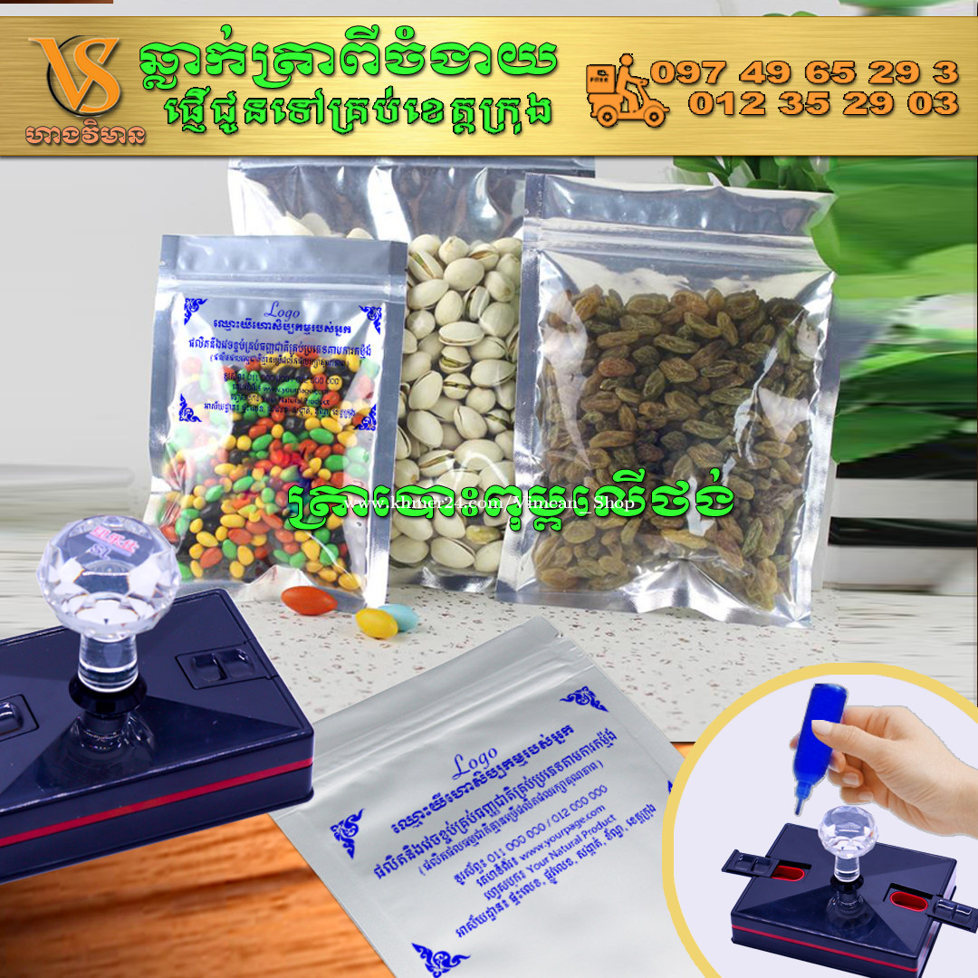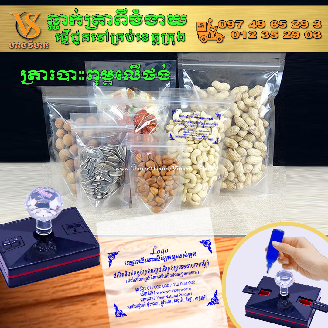 ត្រាសង្កត់លើថង់ប្លាស្ទិច ដើម្បីបោះពុម្ពលើថង់។ សូមទស្សនាវីដេអូ៖ https://www.facebook.com/stampmaking/videos/1094104265243087/ ឆ្លាក់ត្រាពីចំងាយ & ផ្ញើជូនគ្រប់ខេត្តក្រុង។ សាកសួរឬកុម៉្មង់តាម Messenger: http://m.me/stampmaking Tel : 089318xxxClick To Call (Cellcard) / 0882461xxxClick To Call (Metfone) / 093728xxxClick To Call (Smart) Address៖ ផ្ទះ G21, ផ្លូវ Goody, សង្កាត់ទឹកថ្លា, ខណ្ឌសែនសុខ, រាជធានីភ្នំពេញ ( ក្នុងបូរីនៃផ្សាររតនាផ្លាហ្សា1 ឬ ម្តុំស្ពានអាកាសផ្សារដីហ៊ុយ ) ----------------- #plasticbags #logodesigner #printingservices ធ្វើត្រាបោះលើថង់ ត្រាបោះលើថង់ បោះត្រាលើថង់ ផលិតត្រាលើថង់ ឆ្លាក់ត្រាលើថង់ ត្រាថង់ឯកជន ត្រាថង់ក្រុមហ៊ុន ត្រាបោះលើថង់គ្រប់ប្រភេទ ត្រាថង់អត្តសញ្ញាណ សេវាធ្វើត្រាបោះលើថង់