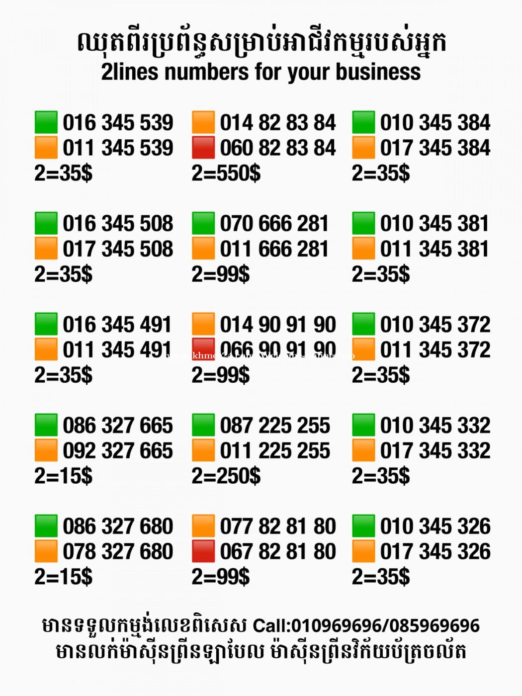 មានលក់លេខពិសេស មានទទួលកម្មង់លេខពិសេស មានលក់ម៉ាស៊ីនព្រីនឡាបែលចល័ត មានលក់ម៉ាស៊ីនព្រីនវិក័យប័ត្រចល័ត មានលក់សម្ភារៈប្រើប្រាស់ក្នុងគ្រួសារ Smart Prime II 1=30$ Smart hero 1=40$ ទូរសព្ទថ្មីក្នុងប្រអប់ លក់ធូរៗរហូតអស់ពីស្តុក អាចប្រើជាឧបករណ៍សម្រាប់ស៊ែរ wifi បាន ទំនាក់ទំនង(ខ្មែរ | English | 中文):010969696 | 085969696 Telegram: https://t.me/W9696 Telegram group: https://t.me/konkonnada អាសយដ្ឋាន:ផ្ទះលេខ២៣ ផ្លូវបេតុងលេខ១ ភូមិទួលពង្រ សង្កាត់ចោមចៅ ខណ្ឌពោធិ៍សែនជ័យ រាជធានីភ្នំពេញ ទីតាំង https://goo.gl/maps/8moqW4iTHUfJEvWQ9 ដើម្បីស្វែងរកលេខអាជីវកម្មដែលលោកអ្នកពេញចិត្ត សូមចូលទៅកាន់:https://www.khmer24.com/Welcome-onlineshop