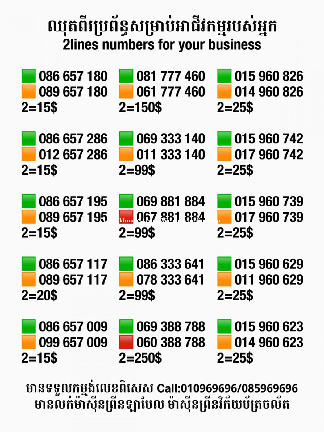 មានលក់លេខពិសេស មានទទួលកម្មង់លេខពិសេស មានលក់ម៉ាស៊ីនព្រីនឡាបែលចល័ត មានលក់ម៉ាស៊ីនព្រីនវិក័យប័ត្រចល័ត មានលក់សម្ភារៈប្រើប្រាស់ក្នុងគ្រួសារ Smart Prime II 1=30$ Smart hero 1=40$ ទូរសព្ទថ្មីក្នុងប្រអប់ លក់ធូរៗរហូតអស់ពីស្តុក អាចប្រើជាឧបករណ៍សម្រាប់ស៊ែរ wifi បាន ទំនាក់ទំនង(ខ្មែរ | English | 中文):010969696 | 085969696 Telegram: https://t.me/W9696 Telegram group: https://t.me/konkonnada អាសយដ្ឋាន:ផ្ទះលេខ២៣ ផ្លូវបេតុងលេខ១ ភូមិទួលពង្រ សង្កាត់ចោមចៅ ខណ្ឌពោធិ៍សែនជ័យ រាជធានីភ្នំពេញ ទីតាំង https://goo.gl/maps/8moqW4iTHUfJEvWQ9 ដើម្បីស្វែងរកលេខអាជីវកម្មដែលលោកអ្នកពេញចិត្ត សូមចូលទៅកាន់:https://www.khmer24.com/Welcome-onlineshop