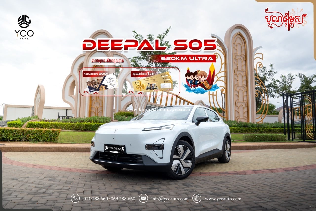 ព័ត៌មានបច្ចេកទេស ម៉ូឌែលឡានCompact SUV: Deepal S05 Ultra Edition 620km 5Seats (Y-2025) #ទំហំរថយន្ដ (Dimensions) ប្រវែង*ទទឹង*កម្ពស់(mm): 4620*1900*1600 គម្លាតកង់(mm): 2765 ទម្ងន់រថយន្ដ Curb weight(kg): 1856 ទម្ងន់ផ្ទុក Gross Weight(kg): 2250 កៅអី(Seats): 5 ទំហំកង់ (Inches): 20 #មាត្រដ្ឋានរថយន្ដ (Performance) ប្រភេទម៉ូទ័រ1 (RWD): ប៉ុងក្រោយ ជម្រើសបើកប3: Eco, Comfort, Sport & Customize សន្ទុះល្បឿន(s): 0 ទៅ 100Km/h (6.48វិនាទី) ល្បឿនអតិបមាៈ 185km/h ប្រភេទហ្វ្រាំងៈ Disc #ថាមពលរថយន្ដ (Powertrain) កម្លាំងសេះមុខ (kW): 200 (270hp) កម្លាំរមួលមុខ (N.m): 210 ប្រភេទអាគុយៈ Lithium iron phosphate battery កម្លាំងសេះក្រោយ (kw): N/A កម្លាំរមួលក្រោយ (N.m): N/A អគ្គីសនី(km): 620 ទំហំថ្ម(kWh): 68.82 សាកល្បឿនលឿន120kWh (20-90%): 24min (14$) សាកនៅផ្ទះ 7kWh (20-90%): 6.8h (8.7$) #ផ្នែកខាងក្រៅ (Exterior) ដំបូលលើកញ្ចក់ (មិនអាចបិតបើកបា) កញ្ជក់ខាងក្រៅចងចាំ (ចុះក្រោមស្វ័យប្រវត្តិ) បញ្ឆេះដោយស្វ័យប្រវត្ដិ (Keyless entry) ផ្លិតទឹកបិត បើកស្វ័យប្រវត្ដិ ដៃទ្វាលិប លានអូតូ កូដក្រោយបិត បើកអូតូ កន្លែងសាកភ្លើងបិត ធម្មតា អំពូលមុខLED ភ្លើងពេលថ្ងៃLED អំពូលមុខLED ភ្លើងកូដ ហ្វាអូតូ #ផ្នែកខាងក្នុង (Interior) ចង្កូតអេឡិចត្រូនិចកំណត់បាន កញ្ចក់មើលក្រោយធម្មតា កៅអីតៃកុងម៉ាស្សា កៅអីជួរមុខ ក្ដៅ ត្រជាក់ កញ្ចក់មើលក្រោយធម្មតា កៅអីជួរមុខចងចាំ កៅអីស្បែក ភ្លើងខាងក្នុងអាចផ្លាស់ប្ដូរបាន 64ព័ណ៌ រុនUSB3 (3 Type C) #ប្រព័ន្ធប្រតិបត្តិការ/ ភាពងាយស្រួល(Operation/ Convenience) អេក្រង់កំសាន្ត(Inch): 15.4អ៊ីញ អេក្រេងកម្រិត 2.5K បច្ចេកវិទ្យា Deepal OS ប្រព័ន្ធតភ្ជាប់Bluetooth ប្រព័ន្ធតភ្ជាប់ CarPlay ប្រព័ន្ធតភ្ជាប់អ៊ីនធើនេត (4G) ប្រព័ន្ធតភ្ជាប់Wifi ប្រព័ន្ធតភ្ជាប់ឆ្លាតវ័យHuawei HiCar ប្រព័ន្ធតភ្ជាប់App Store កន្លែងសាកថ្មស្វ័យប្រវត្តិ 1(Wireless Charging 50kW) កាំមេរ៉ា 540 ដឺក្រេ (5 Camera Monocular) Speaker 14គ្រាប់ #ប្រព័ន្ធសុវត្ថិភាព (Safety) ពោងសុវត្ថិភាព 6 សេនស័រមុខ ក្រោយ 16គ្រាប់ (1C/12U/5W) ប្រព័ន្ធកំណត់ល្បឿន ហ្វ្រាំងអូតូ (Braking energy recovery) ប្រព័ន្ធចាប់កន្លងផ្លូវ ប្រព័ន្ធជូនដំណឹងពេលវ៉ា ជែង ប្រព័ន្ធជូនដំណឹងពេលមាយានជំនះមកជិត ប្រព័ន្ធធ្វើបច្ចុប្បន្នភាពស្វ័យប្រវត្តិ (OTA) មុខងារឈប់ស្ដុបអូតូ(Auto Hold) 🎀ប្រូម៉ូលសិនពិសេសប្រចាំឆ្នាំ 😍ទទួលបានរង្វាន់សរុបជាទឹកប្រាក់ 25000$🤩 ✨រាល់ការជាវរថយន្តគ្រប់ម៉ូឌែលពី អុីកូ អូតូ និងទទូលបានសន្លឹកឆ្នោតនាំសំណាង១សន្លឹក ដែលមានឳកាសឈ្នះរង្វាន់ដូចជា: * Honda Pcx 1 រង្វាន់ * Honda ZoomerX 1 រង្វាន់ * Voucher សរុប 12000$ * iPhone 17pro max 2រង្វាន់ * កាបូប និង មួក អ៊ីកូជាច្រើនរង្វាន់ថែមទៀត ** កម្មវិធីនេះចាប់ផ្តើមពីថ្ងៃទី ០៩ ខែកញ្ញា ឆ្នាំ ២០២៥ ដល់ថ្ងៃទី២១ ខែធ្នូ ឆ្នាំ២០២៥។ ថែមជូនពិសេស🎁🎀🎊🎉 Free ឆ្នាំងសាក7.kWh តំឡើងដល់ផ្ទះ Free ឆ្នាំងសាកចល័ត 3.5kWh Free ដឹករថយន្តដល់ផ្ទះ (ភ្នំពេញ) Free UV ការពារកម្ដៅថ្ងៃ Free ស្កុតការពារទឹកថ្នាំឡាន1ជុំ Free សេវាកម្មថែទាំ 1ឆ្នាំ Free ផ្កាស្រស់1បាច់ធំ Free សេវាកម្មត្រួតពិនិត្យពេញ 1ឆ្នាំ ផ្ដល់ពត៍មានទូទៅ: 011288xxxClick To Call/011288xxxClick To Call/069288xxxClick To Call ផ្ដល់ព័