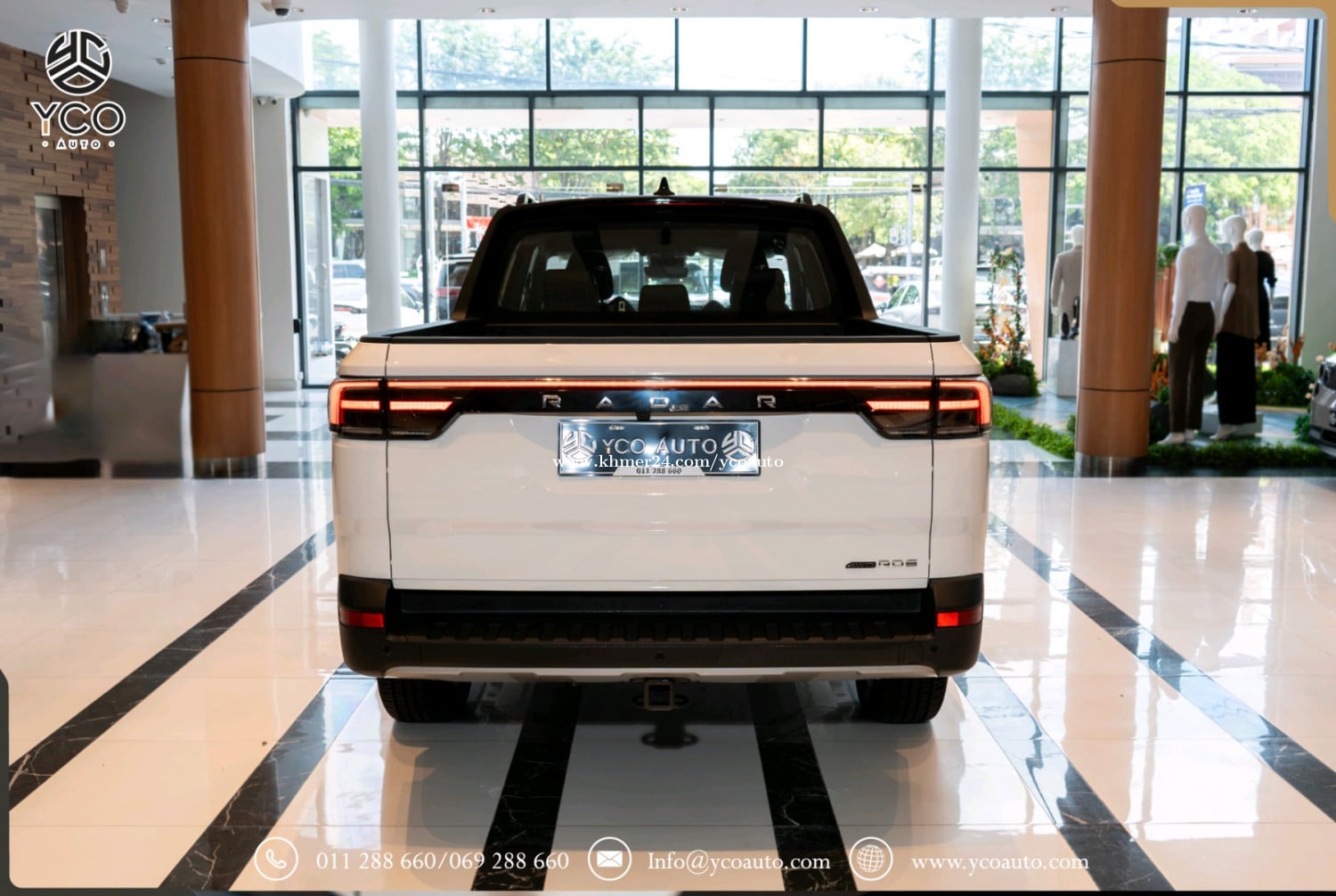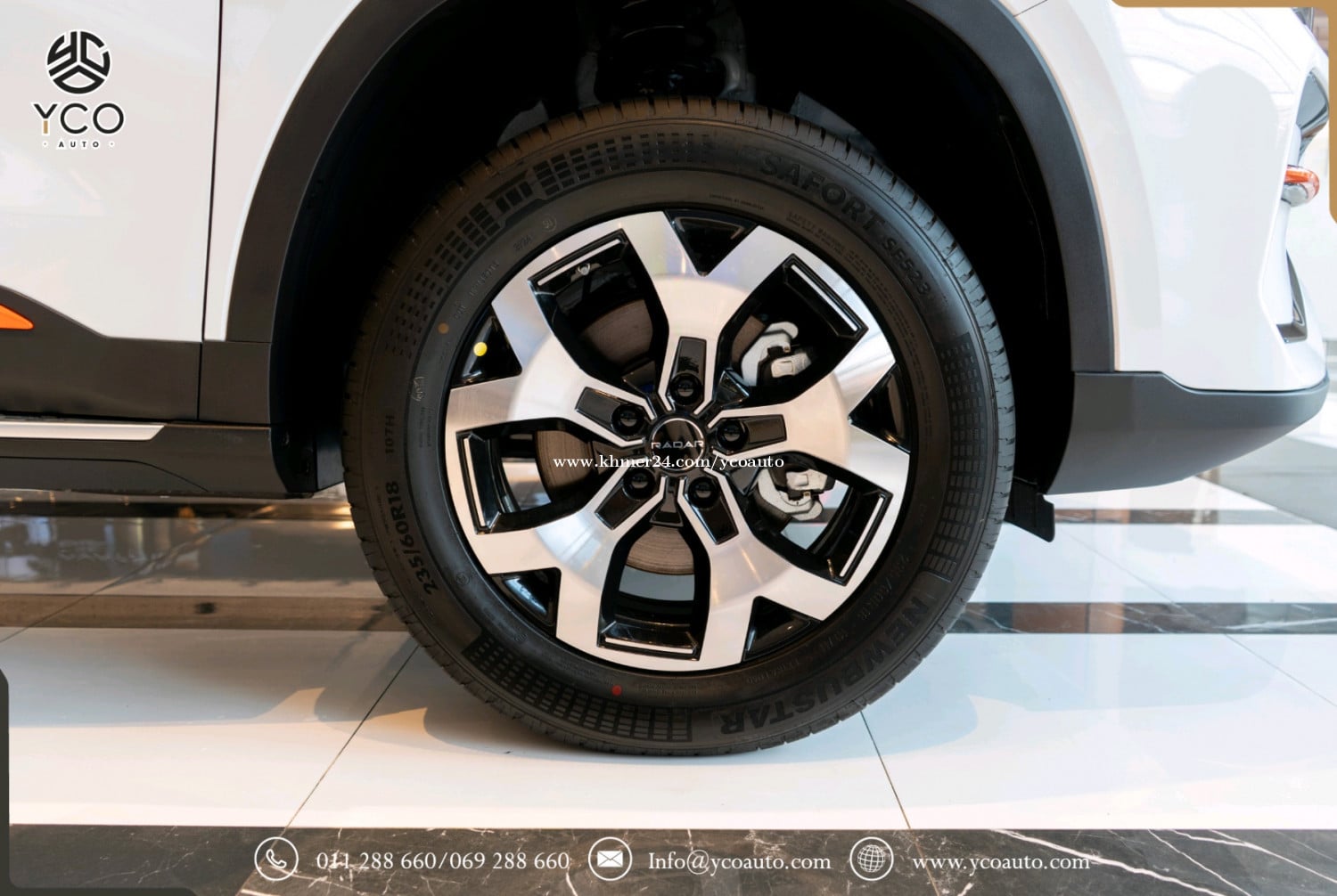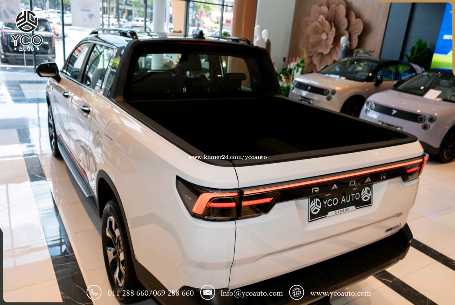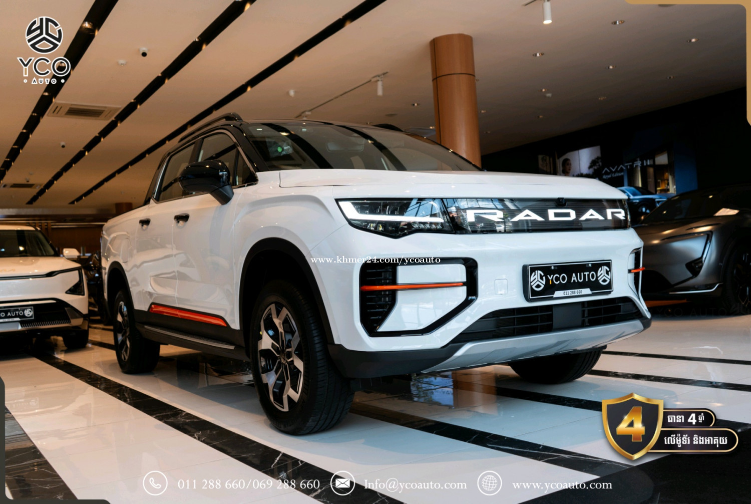 ទំហំរថយន្ដ (Dimensions) ប្រវែង*ទទឹង*កម្ពស់(mm): 5260*1900*1880 គម្លាតកង់(mm): 3120 ទម្ងន់រថយន្ដ Curb weight(kg): 2205 ទម្ងន់ផ្ទុក Gross Weight (kg): 3345 កៅអី(Seats): 5 ទំហំកង់ (Inches): 18 (Newbustar) មាត្រដ្ឋានរថយន្ដ (Performance) ប្រភេទម៉ូទ័រ2 (4WD): ប៉ុងមុខ ក្រោយ ជម្រើសបើកប4+: Eco,Comfort,Sport, (Snow/Mud/Off-Road/Wading +) សន្ទុះល្បឿន(s): 0 ទៅ 100Km/h (4.5វិនាទី) ល្បឿនអតិបមាៈ 190km/h ប្រភេទហ្វ្រាំងៈ Disc ថាមពលរថយន្ដ (Powertrain) កម្លាំងសេះមុខ ក្រោយ (kW): 315 កម្លាំរមួលមុខ ក្រោយ (N.m): 594 ប្រភេទអាគុយៈ Lithium iron phosphate អគ្គីសនី(km): 460 ទំហំថ្ម(kWh): 73 សាកល្បឿនលឿន120kWh (20-90%): 25min (13$) សាកនៅផ្ទះ 7kWh (20-90%): 7h (8$) ផ្នែកខាងក្រៅ (Exterior) ដំបូលលើបិត បើកអូតូ កញ្ចក់ដៃទ្វាមានស៊ុម ក្លុបមុខចំណុះ70 លីត្រ បាំងក្រោយផ្ទុកទម្ងន់ 865kg កម្លាំងអូសទាញ 3000kg កញ្ជក់សងខាងថយក្រោយអូតូ មានសម្ងួតកម្ដៅ មុខងារសម្អាតកាមេរ៉ាខាងក្រោយ ផ្លិតទឹកបើកស្វ័យប្រវត្តិពេលភ្លៀង ភ្លើងបំភ្លឺផ្លូវឡើង ចុះអូតូ អំពូលកុជសងខាង 10គ្រាប់ ភ្លើងប៉ាណាLogo Radarមុខជះចេញក្រៅ ប្រព័ន្ធចង្កៀងមុខ LED ភ្លើងពេលថ្ងៃLED ចង្កៀងក្រោយLED ផ្នែកខាងក្នុង (Interior) ដំបូលខាងក្នុងការពារកម្ដៅថ្ងៃបិត បើកអូតូ ចង្កូតអេឡិចត្រូនិចអាចកំណត់បាន ចង្កូតមានមុខងារកម្ដៅចង្កូត កៅអីមុខ អូតូ រុនទាញភ្លើង10A 2កន្លែង រុនទាញភ្លើង16A 2កន្លែង រុនសាកភ្លើង2.2kw 1កន្លែងAC 220V រុនUSB3 (1 Type C + 2 Type A) កន្លែងដាក់ស៊ីមកាត1 ប្រព័ន្ធប្រតិបត្តិការ/ ភាពងាយស្រួល(Operation/ Convenience) អេក្រង់កំសាន្ត14.6 អ៊ីញ អេក្រង់តាបឡូ10.2 អ៊ីញ ប្រព័ន្ធតភ្ជាប់Bluetooth+WiFi Smart Key Bleutooth ប្រព័ន្ធភ្ជាប់ស៊ីម4G/5G កន្លែងសាកថ្ម1 Wireless Charging ប្រព័ន្ធបញ្ជាតាមApp Control Andriod System (Youtube/Play store….) កាំមេរ៉ា 360 ដឺក្រេ (Degrees Camera) Speaker 8គ្រាប់ (DTS sound effects) កាំមេរ៉ាថតចម្លង Camera Record បញ្ជាដោយសំឡេង Voice Command ប្រព័ន្ធបង្ហាញទម្រទម្ងន់ស្វ័យប្រវ័ត្ដិ ប្រព័ន្ធសុវត្ថិភាព (Safety) ពោងសុវត្ថិភាព 4 ប្រព័ន្ធកំណត់ល្បឿន ចាប់ហ្វ្រាំងអូតូ មុខក្រោយនិងមុខងារឈប់ស្ដុបអូតូ ប្រព័ន្ធរំញ័រយានជំនិៈជុំវិញឡាន មុខងារជូនដំណឹងពេលចេញដំណើរ ប្រព័ន្ធចាប់កន្លងផ្លូវ ប្រព័ន្ធជូនដំណឹងពេលវ៉ា ជែង ប្រព័ន្ធវាស់សម្ពាធកង់ ថែមជូនពិសេស🎁🎀🎊🎉 Free ឆ្នាំងសាក7.kWh តំឡើងដល់ផ្ទះ Free ឆ្នាំងសាកចល័ត 3.5kWh Free ដឹករថយន្តដល់ផ្ទះ (ភ្នំពេញ) Free UV ការពារកម្ដៅថ្ងៃ Free ស្កុតការពារទឹកថ្នាំឡាន1ជុំ Free សេវាកម្មថែទាំ 1ឆ្នាំ Free ម៉ួកYCO 1 ដ៏ស្រស់ស្អាត Free អាវ YCO 1 យ៉ាងទាន់សម័យ Free កាបូបYCO 1 ដាក់កាតស្រស់សោភា Free អាហារពេលល្ងាច 1ពេល Free Voucher 200$ សម្រាប់ទិញសម្លៀកបំពាក់នៅអ៊ីកូ ធានា 4ឆ្នាំ ឬ 48,000គីឡូម៉ែត្រ និងមានថែមជូនការដូរជាច្រើនផ្សេងទៀត ប្រញាប់ឡើងបងៗស្ដុកមានកំណត់🚗🌹🎉🎊💐 ផ្ដល់ពត៍មានទូទៅ: 011288xxxClick To Call/011288xxxClick To Call/069288xxxClick To Call ផ្ដល់ព័ត៍មានជួសជុស ថែទាំ: 017288xxxClick To Call ទីតាំង: លើផ្លូវជាតិលេខ1 ក្បែរច្រកចូលបុរីប៉េងហ៊ួត បឹងស្នោ