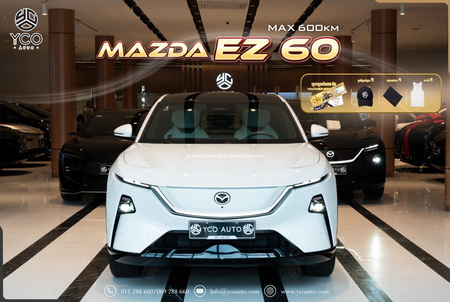 #ទំហំរថយន្ដ (Dimensions) ប្រវែង*ទទឹង*កម្ពស់(mm): 4850*1935*1620 គម្លាតកង់(mm): 2902 ទម្ងន់រថយន្ដ Curb weight(kg): 1962 ទម្ងន់ផ្ទុក Gross Weight(kg): 2590 កៅអី(Seats): 5 ទំហំកង់ (Inches): 21 (Michelin) #មាត្រដ្ឋានរថយន្ដ (Performance) ប្រភេទម៉ូទ័រ1 (RWD): ប៉ុងក្រោយ ជម្រើសបើកប4: Eco, Normal, Sport & Custom សន្ទុះល្បឿន(s): 0 ទៅ 100Km/h (7.9វិនាទី) ល្បឿនអតិបមាៈ 160km/h ប្រភេទហ្វ្រាំងៈ Disc #ថាមពលរថយន្ដ (Powertrain) កម្លាំងសេះមុខ (kW): N/A កម្លាំរមួលមុខ (N.m): N/A ប្រភេទអាគុយៈ Lithium iron phosphate កម្លាំងសេះក្រោយ (kw): 190 (257hp) កម្លាំរមួលក្រោយ (N.m): 290 អគ្គីសនី(km): 600 ទំហំថ្ម(kWh): 77.94 សាកល្បឿនលឿន120kWh (20-90%): 27min (16$) សាកនៅផ្ទះ 7kWh (20-90%): 7.8h (10$) #ផ្នែកខាងក្រៅ (Exterior) ដំបូលកញ្ចក់Panoramic មិនអាចបើកបាន កញ្ជក់មើលក្រោយស្អាតផ្លែក ប្រព័ន្ធភ្លើងមុខLED បិត បើកអូតូ ភ្លើងកូដ ហ្វាLED ឡើងចុះ អូតូ ចង្កៀងក្រោយLED ភ្លើងប្រដេញឆ្លាតវៃ Black Crystal Light ភ្លើង3D electroplating luminous LOGO កញ្ជក់មើលក្រោយសងខាងចងចាំ ផ្លិតទឹកបិត បើកស្វ័យប្រវត្ដិ ទ្វាមុខ ក្រោយគ្មានស៊ុមឆ្លាតវៃ ដៃទ្វាឆ្លាតវៃ លិបលានអូតូ កូដក្រោយបិត បើកអូតូ កន្លែងសាកភ្លើងបិត បើកអូតូ #ផ្នែកខាងក្នុង (Interior) ដំបូលខាងក្នុងការពារកម្ដៅថ្ងៃ បិតបើកអូតូ ចង្កូតអេឡិចត្រូនិច អាចកំណត់បាន មុខងារកម្ដៅចង្កូត មុខងាឆ្លាតវៃ ប៉ះម្ដងលើកកញ្ចក់ទាំងសងខាង ភ្លើងខាងក្នុងអាចផ្លាស់ប្ដូរបាន 256ព័ណ៌ កញ្ចក់មើលក្រោយខាងក្នុងរចនាបទបែបទំនើប កៅអីស្បែក Fabric + ក្រណាត់គុណភាពខ្ពស់ កៅអីជួរមុខគ្មានទំនាញ Zero Gravity Seats កៅអីជួរមុខ ម៉ាស្សាឆ្លាតវ័យ កៅអីជួរមុខក្ដៅ ត្រជាក់ កៅអីជួរមុខចងចាំ Memory Seats #ប្រព័ន្ធប្រតិបត្តិការ/ ភាពងាយស្រួល(Operation/ Convenience) អេក្រង់កំសាន្ត(Inch): 26.45អ៊ីញ (5K) អេក្រង់ឌីជីថលឆ្លាតវៃ(Inch): 10.1 អ៊ីញ ស្ដាយកុងទ័រ 50អ៊ិញ Head Up Display ប្រព័ន្ធតភ្ជាប់ App Store ប្រព័ន្ធតភ្ជាប់ Car Play ប្រព័ន្ធតភ្ជាប់ (4G network, Wi-Fi, Bluetooth) ប្រព័ន្ធបញ្ជាតាមApp Control មុខងារបញ្ជាបញ្ចេះឆ្លាតវៃ NFC card key កន្លែងសាកថ្ម1 Wireless Charging កាំមេរ៉ា 540 ដឺក្រេកម្រិត (5គ្រាប់) កាំមេរ៉ាថតចម្លងពេលបើកបរ Dashcam Speaker 23គ្រាប់ (Dolby Atmos and HiFi original sound)) រុនUSB 3 (front Type-A/rear Type-C) #ប្រព័ន្ធសុវត្ថិភាព (Safety) ពោងសុវត្ថិភាព 8 ប្រព័ន្ធរ៉ាដា 17 Radar (5W/12U) ប្រព័ន្ធសុវត្ថិភាព OTA Upgrade ប្រព័ន្ធកំណត់ល្បឿន ប្រព័ន្ធចាប់កន្លងផ្លូវ ប្រព័ន្ធជូនដំណឹងពេលវ៉ា ជែង ប្រព័ន្ធចូលចតស្វ័យប្រវត្តិ ហ្វ្រាំងអូតូ Automatic Emergency Braking មុខងារឈប់ស្ដុបអូតូ ថែមជូនពិសេស🎁🎀🎊🎉 Free ឆ្នាំងសាក7.kWh តំឡើងដល់ផ្ទះ Free ឆ្នាំងសាកចល័ត 3.5kWh Free ដឹករថយន្តដល់ផ្ទះ (ភ្នំពេញ) Free Vouchers 200$ (ទិញសម្រៀកបំពាក់នៅអ៊ីកូ) Free UV ការពារកម្ដៅថ្ងៃ Free ម៉ួកYCO 1 ដ៏ស្រស់ស្អាត Free អាវ YCO 1 យ៉ាងទាន់សម័យ Free កាបូបYCO 1 ដាក់កាតស្រស់សោភា Free ស្កុតការពារទឹកថ្នាំឡាន1ជុំ Free សេវាកម្មថែទាំ 1ឆ្នាំ Free អាហារពេលល្ងាច1ពេល Free 1 year warranty of service និងមានថែមជូនការដូរជាច្រើនផ្សេងទៀត ប្រញាប់ឡើងបងៗស្ដុកមានកំណត់🚗🌹🎉🎊💐 ផ្ដល់ពត៍មានទូទៅ: 011288xxxClick To Call/011288xxxClick To Call/069288xxxClick To Call ផ្ដល់ព័