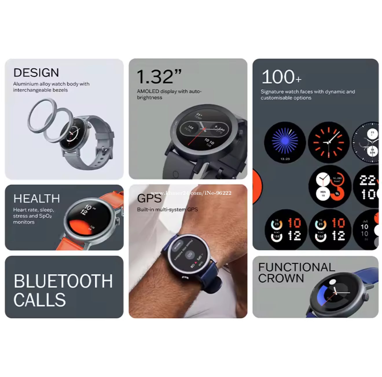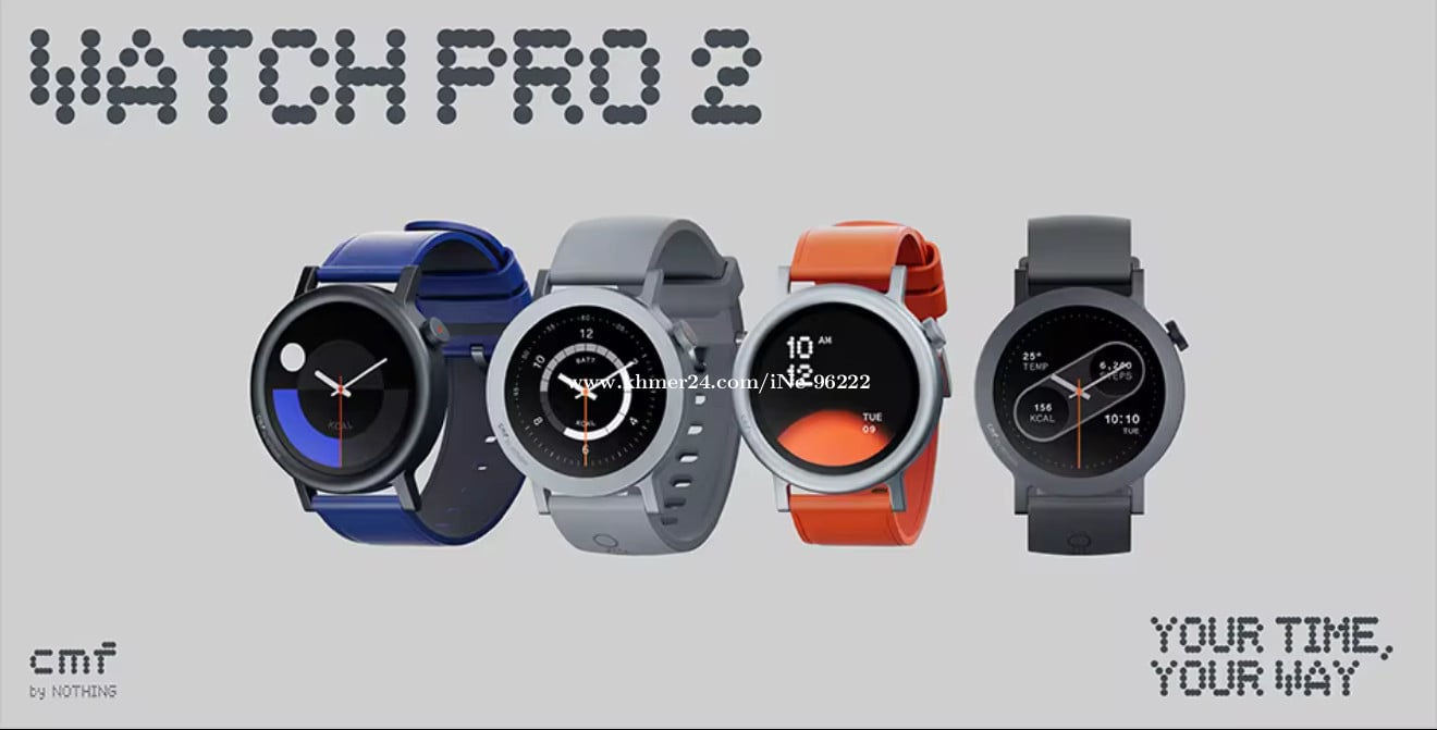 - នាឡិកាឆ្លាតវៃ CMF WATCH PRO 2 - ខ្សែទឹកក្រូច - Buttons: One Functional Crown - Al Voice Assistant: Yes - Size & weight: Dark Grey & Ash Grey: 25.5 x 4.5 x 1.36 cm, 48.1 g - Blue & Orange: 25.5 x 4.5 x 1.39 cm, 44.4 g - Support Sport Modes: 120 Sport Modes with 5 Smart Recogntion - Screen: 1.32 inch AMOLED Display Auto-brightness - Resolution: 466 x 466 with 353 PPI - Screen luminance: 620nits - APP: CMF WATCH APP - Charging Method: Charging Line - Charging Time: 100 Mins - Watch faces: 100+ signature watch faces with customisable options (including dynamic/interactive and static watch faces) - Battery: 11 Days of typical use, 305mAh - 9 Days of heavy use - 45.8 Days in power saving mode - 17.4 Hours of continuous Bluetooth calls - 25 Hours of continuous GPS use - Bluetooth: Bluetooth 5.3 - WATER & DUST RESISTANCE IP68 - System Support: Supports iOS 13 and above, Android 8.0 and above - GPS: GPS/GLONASS/Galileo/QZSS/Beidou - Contact: https://t.me/SoPheakSANH