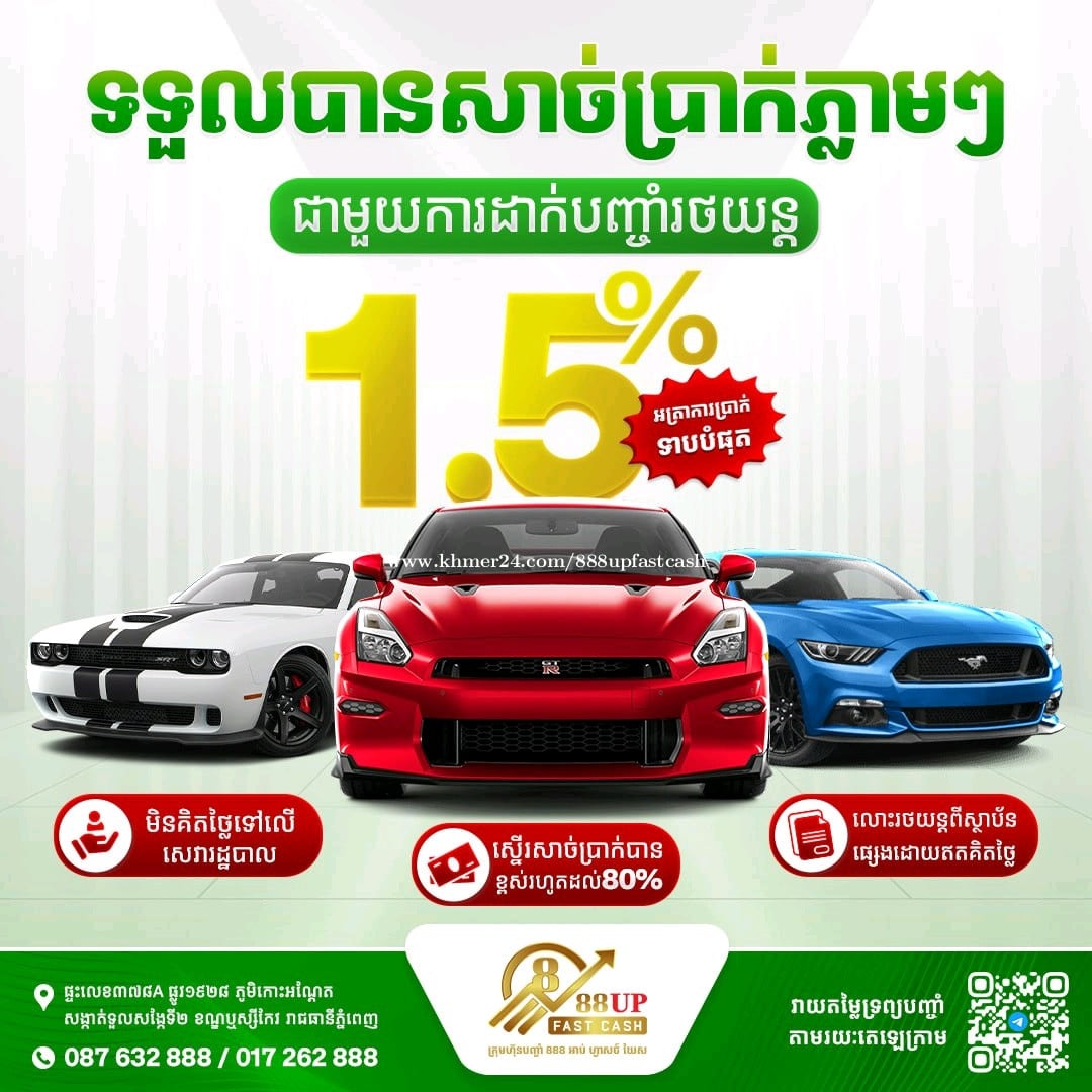 ទទួលបញ្ចាំរថយន្តគ្រប់ប្រភេទ អត្រាការប្រាក់ត្រឹមតែ 1.5%