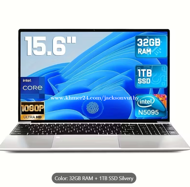 Laptop 15.6'', 1 TB SSD 32GB Dual Channel RAM, Intel N5095 Processor (up to 2.9GHz), 1080P Full HD Display, Backlit Keyboard, Fingerprint Recognition, Webcam, USB 3.0, WiFi,