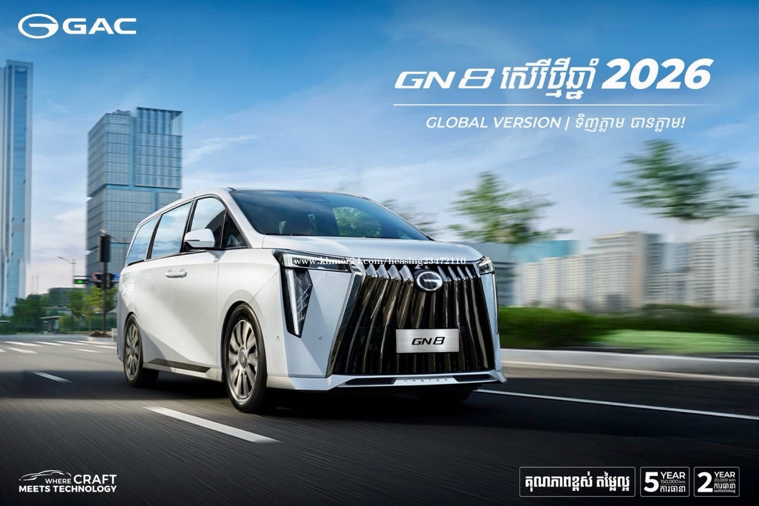 ✨ ការរចនាដ៏ល្អប្រណីត បង្ហាញពីឧត្តមភាពដ៏អស្ចារ្យ នាពេលរួមដំណើរជាមួយកំពូលរថយន្ត 𝐆𝐀𝐂 𝐆𝐍𝟖 ✨ 𝐆𝐀𝐂 𝐆𝐍𝟖 ស៊េរីថ្មីឆ្នាំ𝟐𝟎𝟐𝟔 ទិញភ្លាម បានភ្លាម! 👉 រាល់ការទិញរថយន្តពីក្រុមហ៊ុន 𝗚𝗔𝗖 𝗖𝗮𝗺𝗯𝗼𝗱𝗶𝗮 ដែលជាក្រុមហ៊ុនចែកចាយផ្លូវការតែមួយគត់នៅកម្ពុជា អតិថិជននឹងទទួលបានសន្តិភាពផ្លូវចិត្ត ព្រមទាំងអត្ថប្រយោជន៍ជាច្រើន៖ 1. ជារថយន្តប្រភេទ Global Version ងាយស្រួលប្រើប្រាស់ 2. ទទួលបានការធានារយៈពេលវែងរហូតដល់ 5ឆ្នាំ ឬ 150,000 គីឡូម៉ែត្រ ផ្លូវការពីរោងចក្រ GAC ប្រទេសចិន 3. ទទួលបានបន្ថែម កញ្ចប់សេវាកម្មថែទាំរហូតដល់ 2ឆ្នាំ ឬ 20,000គីឡូម៉ែត្រ ដោយឥតគិតថ្លៃ 4. ទទួលបានការប្រឹក្សា ថែទាំ និងជួសជុល ពីជាងជំនាញ ដែលបានបណ្តុះបណ្តាលពីរោងចក្រ GAC ប្រទេសចិន 5. ទទួលបានការអាប់ឌែតលើ Software តាមការកំណត់ និងទៀងទាត់ពីជាងជំនាញ 6. ទទួលបាននូវគ្រឿងបន្លាស់គុណភាពខ្ពស់ Original ពីរោងចក្រ GAC ។