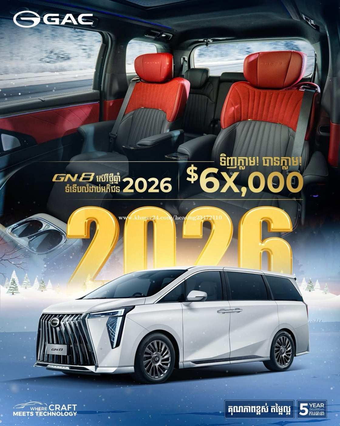 💫 តើរថយន្ត 𝗚𝗔𝗖 𝗚𝗡𝟴 ស៊េរីថ្មីឆ្នាំ𝟮𝟬𝟮𝟲 មួយណាជាជម្រើសរបស់អ្នក? ទិញភ្លាម បានភ្លាម! រថយន្ត 𝗚𝗔𝗖 𝗚𝗡𝟴 (សាំង) និងរថយន្ត 𝗚𝗔𝗖 𝗚𝗡𝟴 𝗣𝗛𝗘𝗩 (សាំង និងអគ្គិសនី) 👉 រាល់ការទិញរថយន្តពីក្រុមហ៊ុន 𝗚𝗔𝗖 𝗖𝗮𝗺𝗯𝗼𝗱𝗶𝗮 ដែលជាក្រុមហ៊ុនចែកចាយផ្លូវការតែមួយគត់នៅកម្ពុជា អតិថិជននឹងទទួលបាននូវ « សន្តិភាពផ្លូវចិត្ត និងទំនុកចិត្តខ្ពស់ » 𝟭. រថយន្តជាប្រភេទ 𝗚𝗹𝗼𝗯𝗮𝗹 𝗩𝗲𝗿𝘀𝗶𝗼𝗻 ងាយស្រួលក្នុងការប្រើប្រាស់ 𝟮. ទទួលបានការធានាផ្លូវការពីរោងចក្រ 𝗚𝗔𝗖 និងមានរយៈពេលវែងរហូតដល់ 𝟱ឆ្នាំ ឬ 𝟭𝟱𝟬,𝟬𝟬𝟬 គីឡូម៉ែត្រ 𝟯. រោងជាងបំពាក់ឧបករណ៍គ្រប់គ្រាន់ ជាពិសេសមាន 𝗚𝗔𝗖 𝗦𝗰𝗮𝗻𝗻𝗲𝗿 ដែលបំពាក់ 𝗦𝗼𝗳𝘁𝘄𝗮𝗿𝗲 𝗟𝗶𝗰𝗲𝗻𝘀𝗲 មានសមត្ថភាពក្នុងការស្គេនរកកំហូច 𝗥𝗲𝘀𝗲𝘁 ឬ 𝗣𝗿𝗼𝗴𝗿𝗮𝗺 ផ្លាស់ប្តូរ 𝗯𝗼𝗮𝗿𝗱𝘀 បញ្ជារអេឡិចត្រូនិច ផ្សេងៗជាដើម 𝟰. មានជាងជំនាញដែលមានបទពិសោធន៍យូរឆ្នាំ និងទទួលបានការបណ្តុះបណ្តាលយ៉ាងត្រឹមត្រូវពីរោងចក្រ 𝗚𝗔𝗖 𝟱. អាចបញ្ជាទិញគ្រឿងបន្លាស់សុទ្ធ ពីរោងចក្រ 𝗚𝗔𝗖 តាមរយៈក្រុមហ៊ុន 𝗚𝗔𝗖 𝗖𝗮𝗺𝗯𝗼𝗱𝗶𝗮 _______________________________