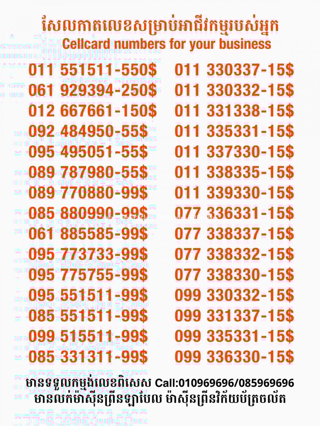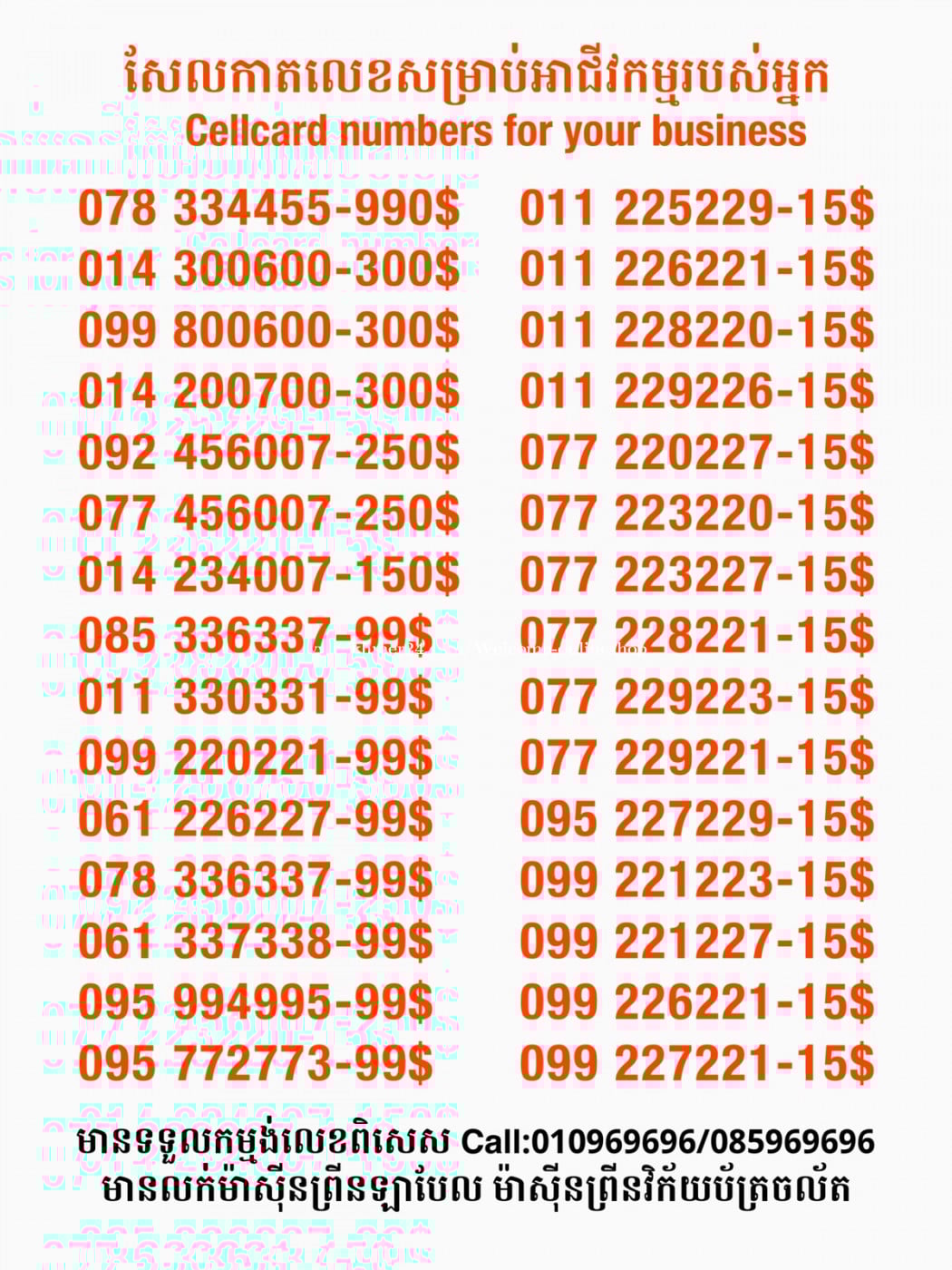 មានលក់លេខពិសេស មានទទួលកម្មង់លេខពិសេស មានលក់ម៉ាស៊ីនព្រីនឡាបែលចល័ត មានលក់ម៉ាស៊ីនព្រីនវិក័យប័ត្រចល័ត មានលក់សម្ភារៈប្រើប្រាស់ក្នុងគ្រួសារ Smart Prime II 1=30$ Smart hero 1=40$ ទូរសព្ទថ្មីក្នុងប្រអប់ លក់ធូរៗរហូតអស់ពីស្តុក អាចប្រើជាឧបករណ៍សម្រាប់ស៊ែរ wifi បាន ទំនាក់ទំនង(ខ្មែរ | English | 中文):010969696 | 085969696 Telegram: https://t.me/W9696 Telegram group: https://t.me/konkonnada អាសយដ្ឋាន:ផ្ទះលេខ២៣ ផ្លូវបេតុងលេខ១ ភូមិទួលពង្រ សង្កាត់ចោមចៅ ខណ្ឌពោធិ៍សែនជ័យ រាជធានីភ្នំពេញ ទីតាំង https://goo.gl/maps/8moqW4iTHUfJEvWQ9 ដើម្បីស្វែងរកលេខអាជីវកម្មដែលលោកអ្នកពេញចិត្ត សូមចូលទៅកាន់:https://www.khmer24.com/Welcome-onlineshop