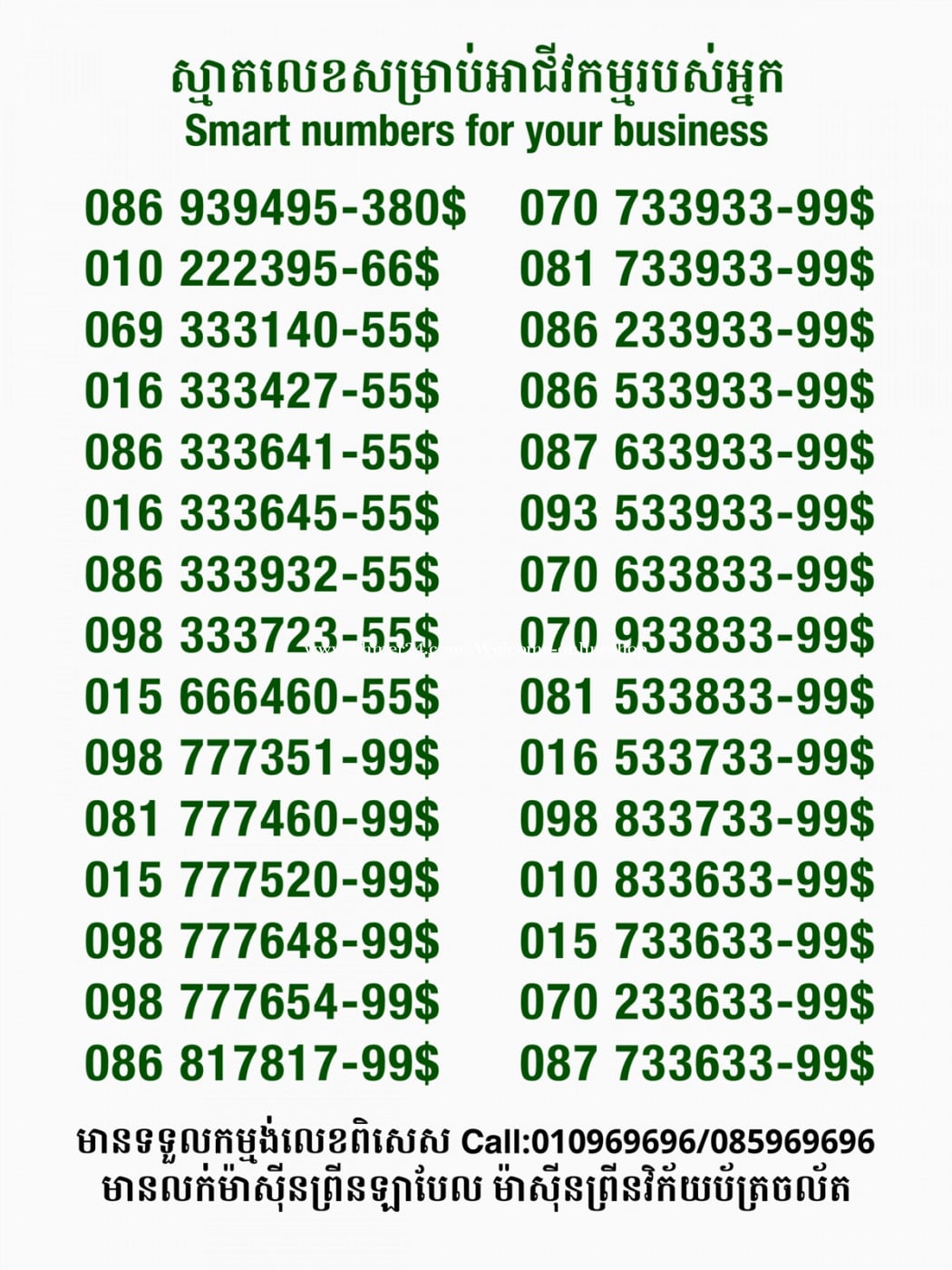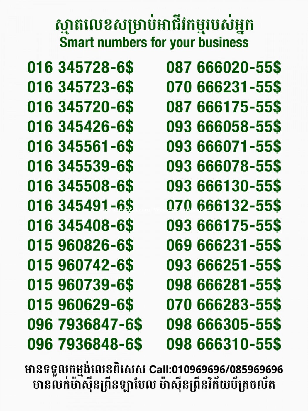 មានលក់លេខពិសេស មានទទួលកម្មង់លេខពិសេស មានលក់ម៉ាស៊ីនព្រីនឡាបែលចល័ត មានលក់ម៉ាស៊ីនព្រីនវិក័យប័ត្រចល័ត មានលក់សម្ភារៈប្រើប្រាស់ក្នុងគ្រួសារ Smart Prime II 1=30$ Smart hero 1=40$ ទូរសព្ទថ្មីក្នុងប្រអប់ លក់ធូរៗរហូតអស់ពីស្តុក អាចប្រើជាឧបករណ៍សម្រាប់ស៊ែរ wifi បាន ទំនាក់ទំនង(ខ្មែរ | English | 中文):010969696 | 085969696 Telegram: https://t.me/W9696 Telegram group: https://t.me/konkonnada អាសយដ្ឋាន:ផ្ទះលេខ២៣ ផ្លូវបេតុងលេខ១ ភូមិទួលពង្រ សង្កាត់ចោមចៅ ខណ្ឌពោធិ៍សែនជ័យ រាជធានីភ្នំពេញ ទីតាំង https://goo.gl/maps/8moqW4iTHUfJEvWQ9 ដើម្បីស្វែងរកលេខអាជីវកម្មដែលលោកអ្នកពេញចិត្ត សូមចូលទៅកាន់:https://www.khmer24.com/Welcome-onlineshop