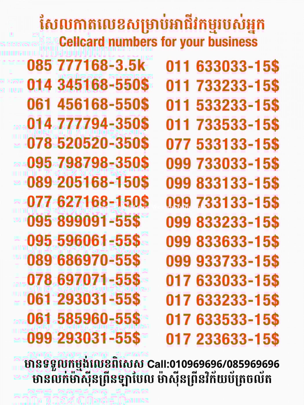 មានលក់លេខពិសេស មានទទួលកម្មង់លេខពិសេស មានលក់ម៉ាស៊ីនព្រីនឡាបែលចល័ត មានលក់ម៉ាស៊ីនព្រីនវិក័យប័ត្រចល័ត មានលក់សម្ភារៈប្រើប្រាស់ក្នុងគ្រួសារ Smart Prime II 1=30$ Smart hero 1=40$ ទូរសព្ទថ្មីក្នុងប្រអប់ លក់ធូរៗរហូតអស់ពីស្តុក អាចប្រើជាឧបករណ៍សម្រាប់ស៊ែរ wifi បាន ទំនាក់ទំនង(ខ្មែរ | English | 中文):010969696 | 085969696 Telegram: https://t.me/W9696 Telegram group: https://t.me/konkonnada អាសយដ្ឋាន:ផ្ទះលេខ២៣ ផ្លូវបេតុងលេខ១ ភូមិទួលពង្រ សង្កាត់ចោមចៅ ខណ្ឌពោធិ៍សែនជ័យ រាជធានីភ្នំពេញ ទីតាំង https://goo.gl/maps/8moqW4iTHUfJEvWQ9 ដើម្បីស្វែងរកលេខអាជីវកម្មដែលលោកអ្នកពេញចិត្ត សូមចូលទៅកាន់:https://www.khmer24.com/Welcome-onlineshop