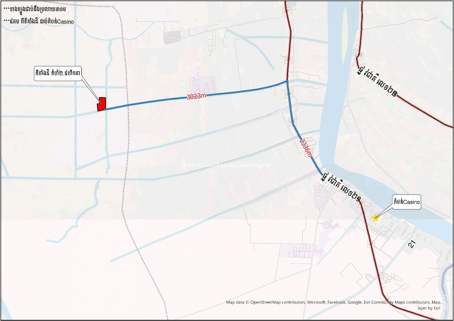 ទីតាំងដីកែង ចំហៀងផ្លូវ២០ម នៅជិតតំបន់អភិវឌ្ឍន៍ស្រាប់ដែរមានចិនជួល និងអគារធំៗ Casino