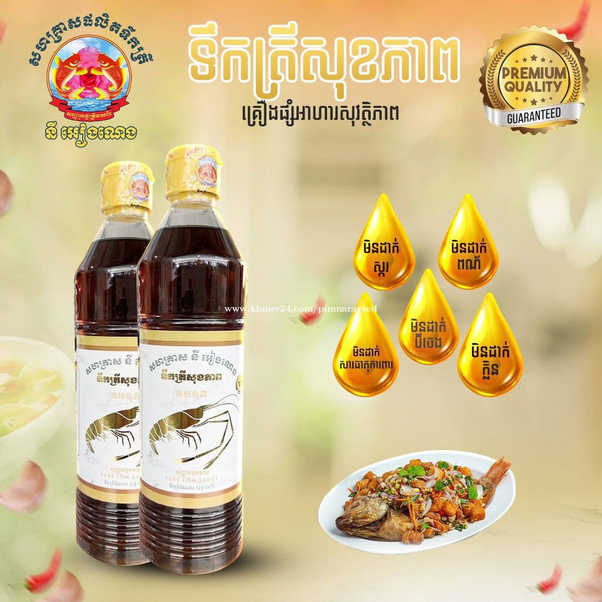 អ្នកម៉ាក់ឆ្លាតវៃ ត្រូវមានទឹកត្រីសុខភាពក្នុងផ្ទះ ជាពិសេសបងប្អូនខ្មែរអុីស្លាមអាចបរិភោគបាន -មិនដាក់ក្លិន -មិនដាក់សាធាតុការពារ -មិនដាក់ប៊ីចេង -មិនដាក់ពណ៏ -មិនដាក់ស្ករ