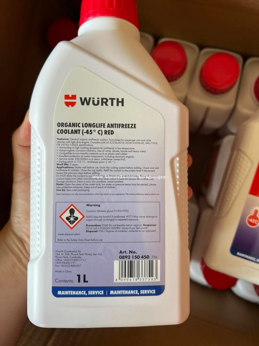 ទឹកស្អំ WURTH មានចំណុះ 4 លីត្រ = 30$ នឹង 1 លីត្រ = 14$ គុណភាព ស្តង់ដា អាឡឺម៉ង់