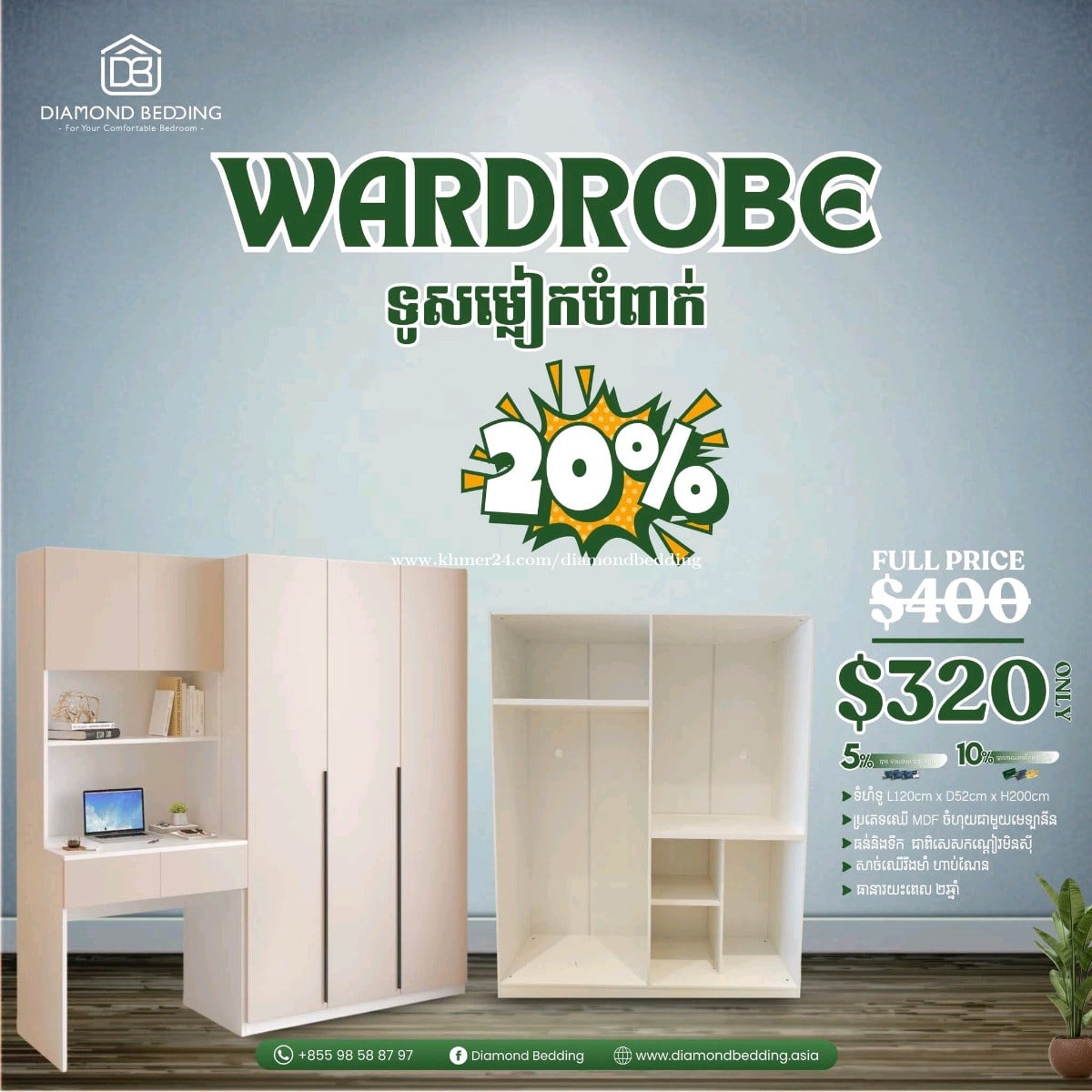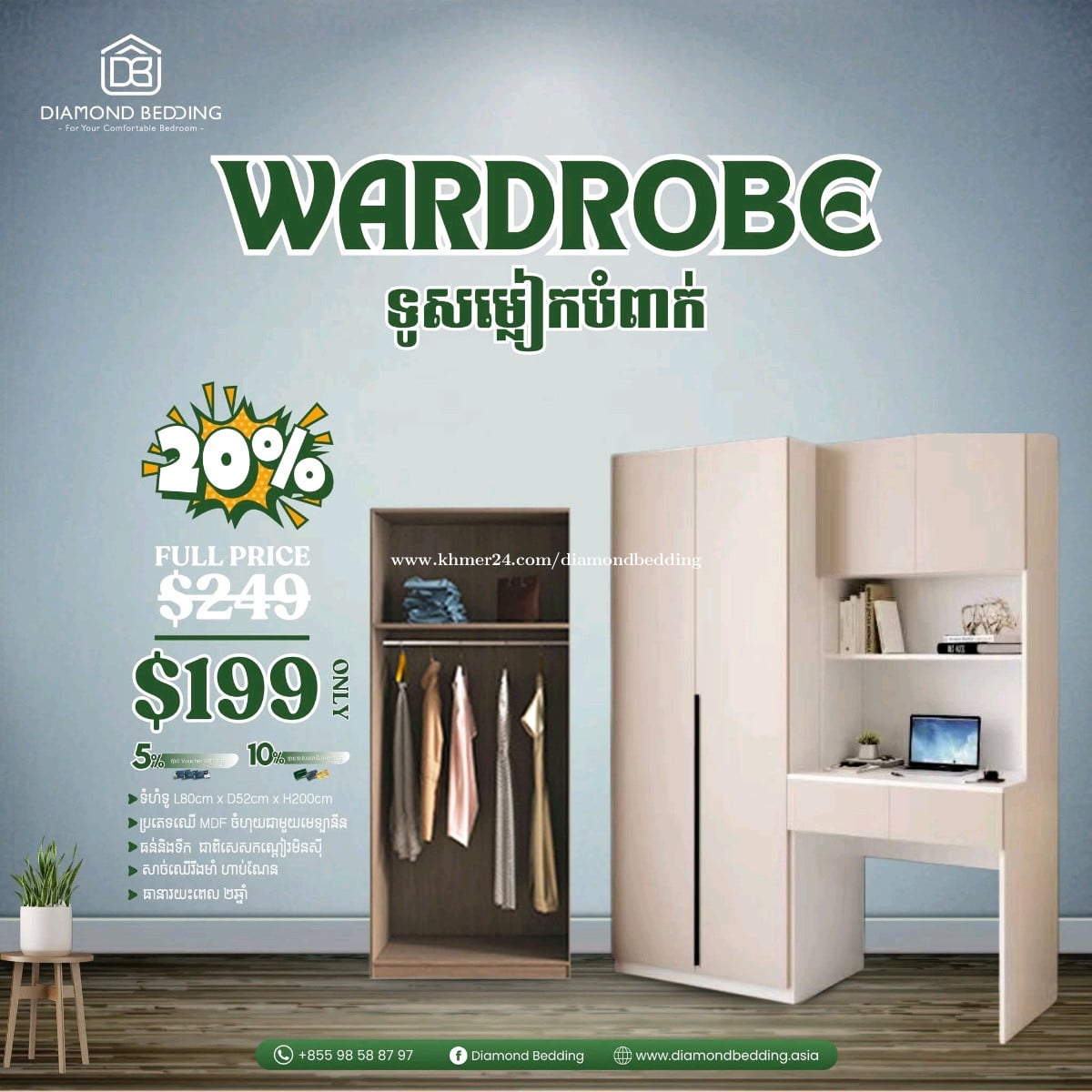 👉🏻ទូទ្វារបើក ម៉ូតModern បែប Minimalist ❤️ចំណេញSpec អាចដាក់ឥវ៉ាន់បានច្រើនកន្លែង មានកន្លែងព្យួរខោអាវដល់ទៅ 3 👔👕👚កន្លែង អាចបត់ខោអាវដាក់ក្នុងថតក៏បាន មានរហូតដល់ 3ថត ធំទូលាយ មានថតកិមួយដាក់ឥវ៉ាន់សំងាត់ ផងដែរ ខាងក្នុងទូជ្រៅ មិនចាំបាច់បារម្ភរឿងដាក់ខោអាវច្រើន មិនអស់ទេ ទូមានភាពរឹងមាំ ជាប្រភេទសាច់ឈើMDF មាំធន់ សាច់ឈើហាប់ណែន ធ្ងន់ល្អ🪵🪵 ការពារការសឹកឆ្នូត កណ្ដៀរមិនស៊ី ធន់នឹងទឹក ងាយស្រួលជូតសំអាតមានរន្ធខ្យល់ ចេញចូល មិនមានធុំក្លិន 🌺🥰ត្រចៀកទ្វារហាប់ណែន មិនលឺសូរ មិនធ្លាក់ទ្វារគ្រោងទូមាំ ចង់រុះរើ10-20ដង ក៏បាន ។ មានការធានារយៈពេល 2 ឆ្នាំទៅលើគុណភាពសាច់ឈើ សាកសម បំផុតសម្រាប់ ខុនដូ អាផាតមិន និងគេហដ្ឋាន របស់លោកអ្នក💚💚 👉🏻 ខ្នាត 80cmx0.5mx2m(WxDxH) 1.2mx0.5mx2m(WxDxH) 1.6mx0.5mx2m(WxDxH) Facebook Page: Diamond Bedding & Furniture Facebook Page: Diamond Sweet Home & Furniture TikTok: http://www.tiktok.com/@diamondsweethome Website: http://www.diamondbedding.asia https://goo.gl/maps/EJXRxYeqYEu4koAN7