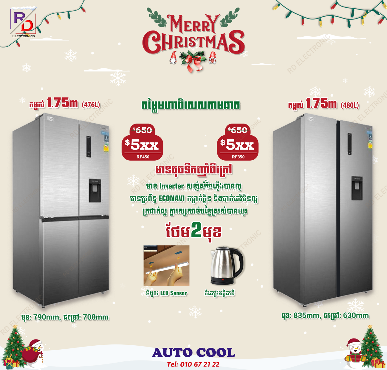 ទូទឹកកកទ្វា២ ទ្វា៤ Side by side 5xx$