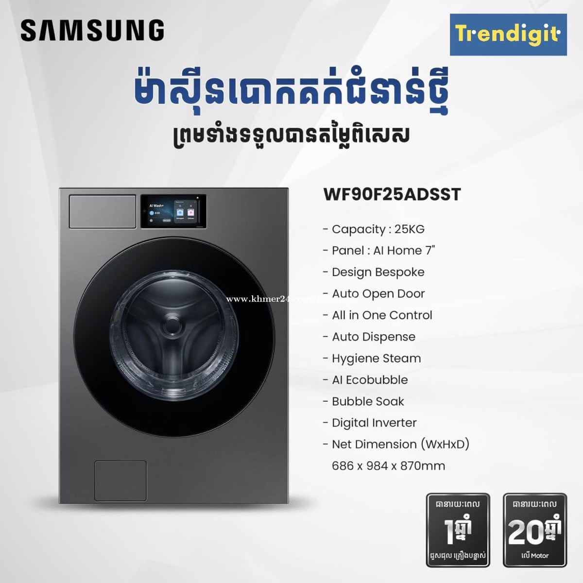 🧼✨ ទូបោកខោអាវ ចំហៀង SAMSUNG 25kg មានអេក្រង់ WF90F25ADSST បោកស្អាត ល្អិតល្អន់ ដោយម៉ាស៊ីនបោកគក់ Samsung ជំនាន់ថ្មី! ថែរក្សាខោអាវបែបសម័យថ្មី 📦 សន្សំទឹក សន្សំភ្លើង សន្សំពេលវេលា ⏱️💧 ជ្រើសរើសដំណោះស្រាយបោកខោអាវឆ្លាតវៃ៖ ✅ បច្ចេកវិទ្យាបោកអ៊ីនវើទ័រ (Inverter) ស្ងៀមស្ងាត់ មិនរំខាន ✅ ថែរក្សាក្រណាត់សម្លៀកបំពាក់ សមស្របសម្រាប់គ្រួសារមានទារក ✅ បោកស្អាតគ្រប់សម្លៀកបំពាក់ ✅ សន្សំទឹក និងថាមពលបានយ៉ាងមានប្រសិទ្ធភាព ✅ រចនាទាន់សម័យ សាកសមគ្រប់រចនាបទ ចាប់ផ្តើមថ្ងៃនេះ ជាមួយភាពងាយស្រួលក្នុងការបោកខោអាវ និងថែរក្សាខោអាវឲ្យស្អាត! លោកអ្នកអាចស្វែងរកបាននៅ Trendigit-ដ្រេនឌីជីឌ! សូមចុចត្រង់នេះសម្រាប់ព័ត៌មានបន្ថែម 098877xxxClick To Call (Telegram) https://t.me/Trendigit_yi