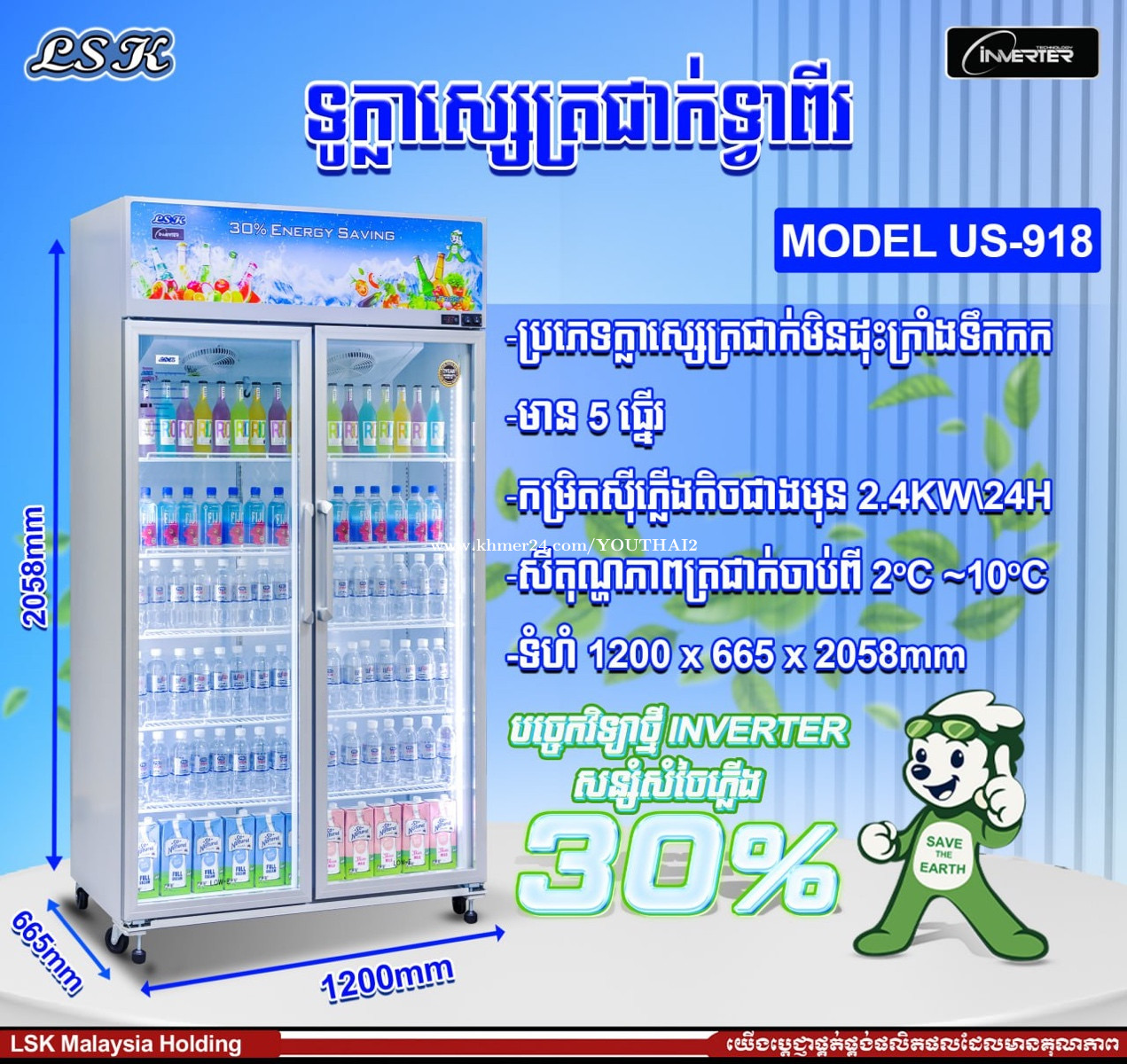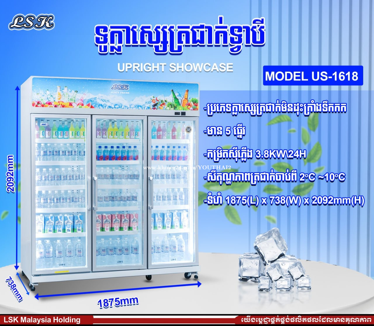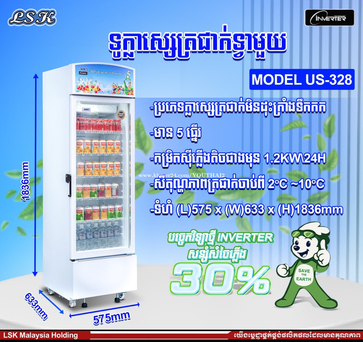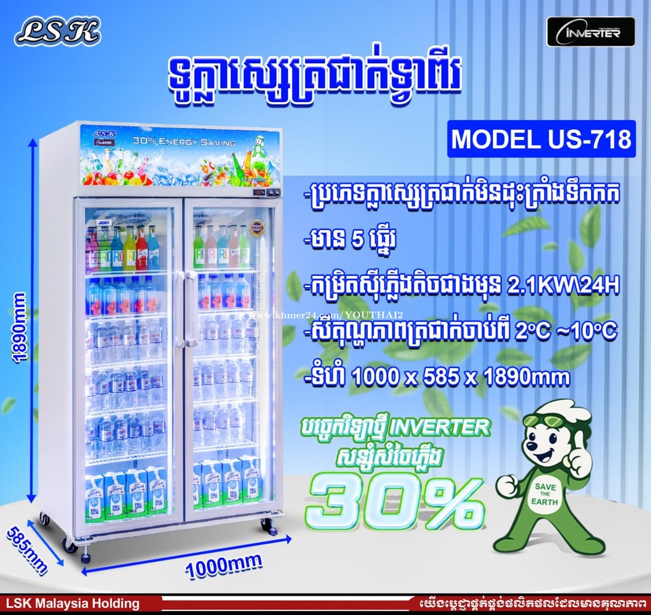 ទូរក្លាស្សេត្រជាក់ LSK ប្រភេទ inverter Mode US-718 750$ ធានា២ឆ្នាំ មានច្រើនទំហំ ច្រើនជម្រើស 077778xxxClick To Call 086778xxxClick To Call Link telegram https://t.me/YouThaiShop