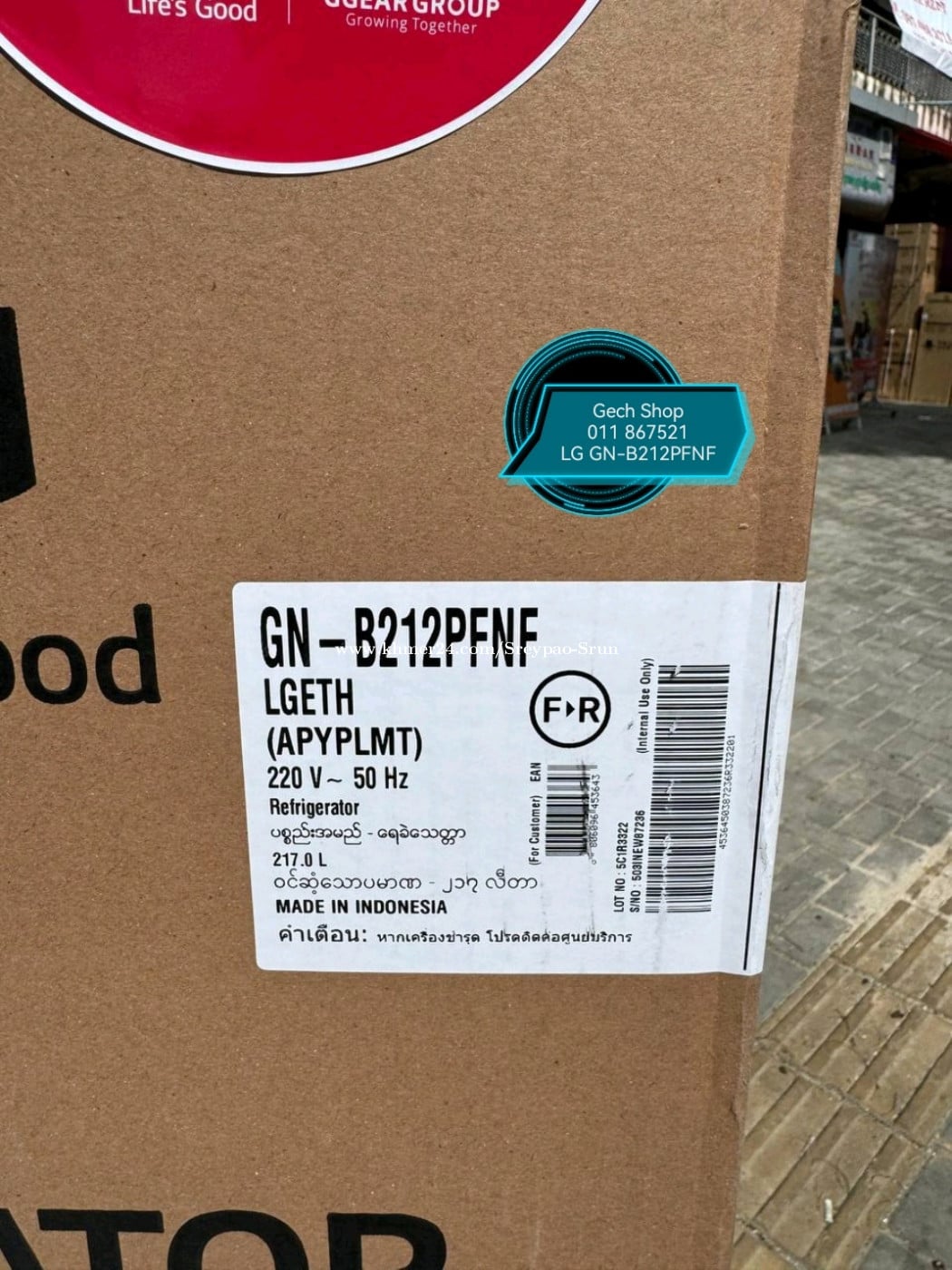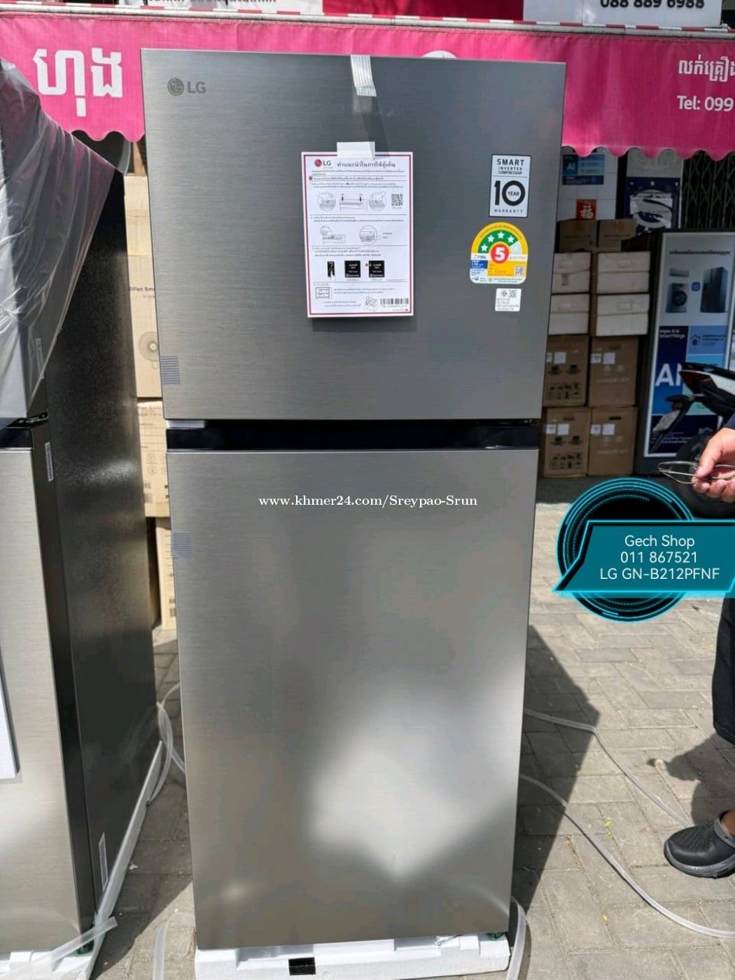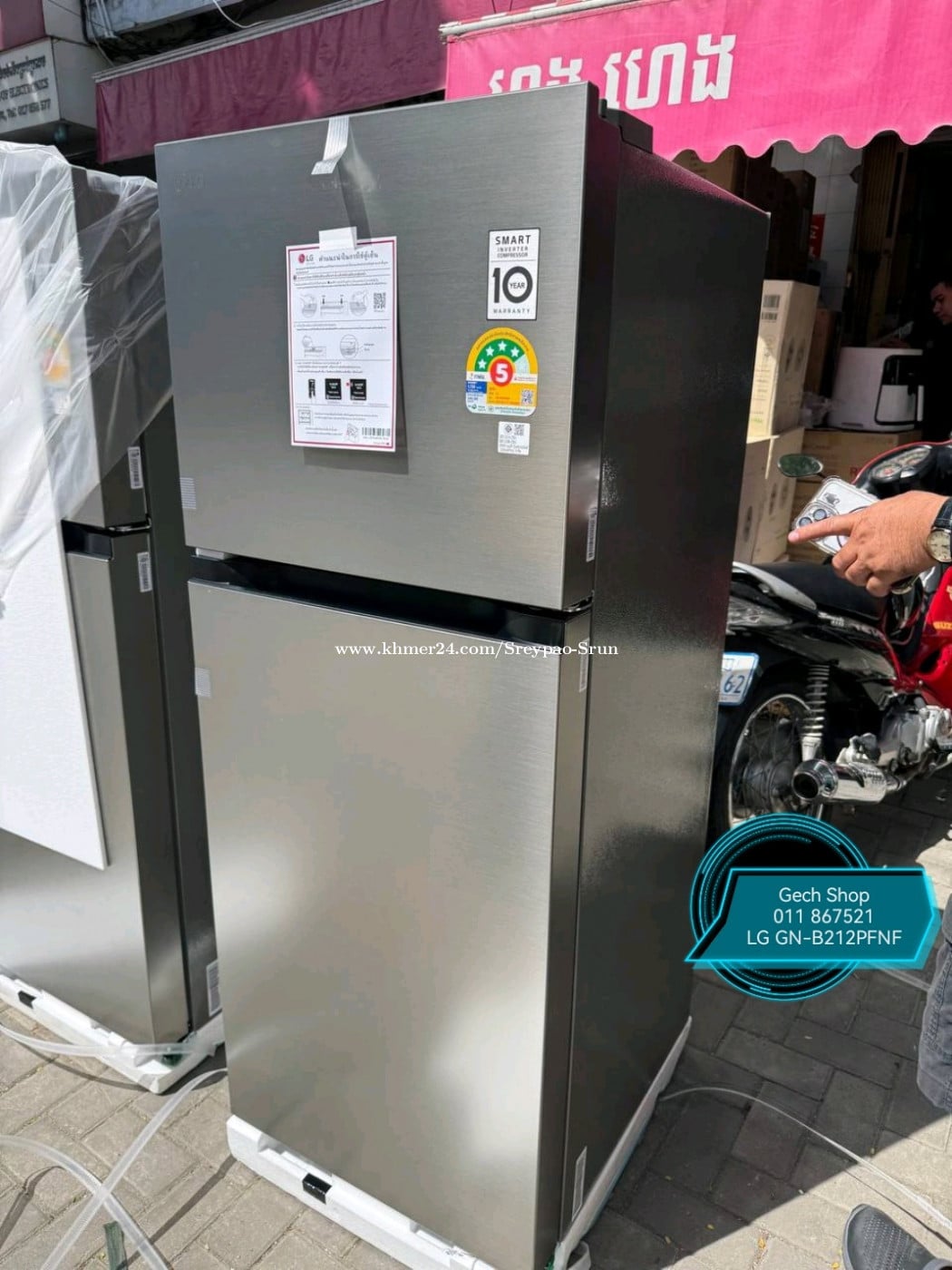 ទូរទឹកកក Refrigerator LG GN-B212PFNF ចំណុះ២១៧លីត្រ មានមុខងារសំខាន់ៗដូចជា៖ - Smart Inteverter Compressor សន្សំសំចៃអគ្គីសនី និងមានសំឡេងស្ងាត់ល្អ - Deodorizer មានមុខងារបំបាត់ក្លិន - Multi Air Flow បញ្ចេញខ្យល់ត្រជាក់គ្រប់ថត - Pullout Tray ធ្នើរដាក់សម្ភារៈងាយស្រួលដកចេញចូល - 10 Years Compressor មានការធានាលើកុំប្រេស័ររហូតដល់ ១០ឆ្នាំ មានលក់នៅហាង Gech Shop ធានាផលិតផលក្រុមហ៊ុន តម្លៃសមរម្យ Tel: 011867xxxClick To Call ➡️📥📩 https://t.me/GechShop_PaoPao #ទូរទឹកកក #Refrigerator #LG