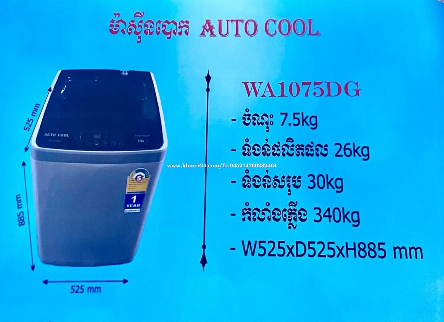 ទូរបោក7.5គីឡូ ម៉ាកAuto Coolបោកស្អាតបានល្អសុីភ្លើងតិចធានា១ឆ្នាំនៅភ្នំពេញហ្រ្វីដឹកនិងតម្លើង