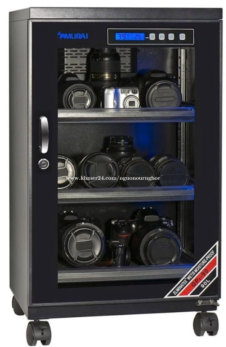 ទូរសម្ងួតឧបករណ៍អេឡិចត្រូនិច ឬម៉ាសុីនកាមេរ៉ា តម្លៃចរចារ SamuraiGP2-90L Digital Control Dehumidifying Dry Cabinet 90L capacity (Black)