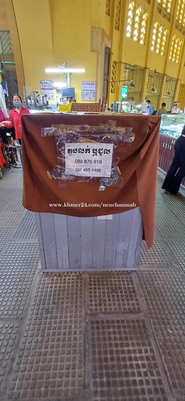 ទូលក់ ស្លាប D ទិសខាងត្បូងផ្សារថ្មី អាចលក់មាស គ្រឿងអលង្ការ និង សម្ភារៈផ្សេងៗ តម្លៃ 50000$ (អាចចរចាបាន) មានភ្ញៀវ និង មនុស្សដើរច្រើន អ៊ូអរ ទំនាក់ទំនង: 085961xxxClick To Call