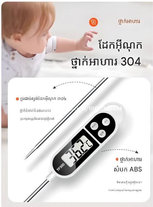 ទែម៉ូម៉ែត្រ ឧបករណ៍វាស់អេឡិចត្រូនិចប្រភេទស៊ើបអង្កេត សម្រាប់វាស់សីតុណ្ហភាពទឹក ទឹកដោះគោ សម្រាប់ចិញ្ចឹមកូនដ៏ឆ្លាតវៃ