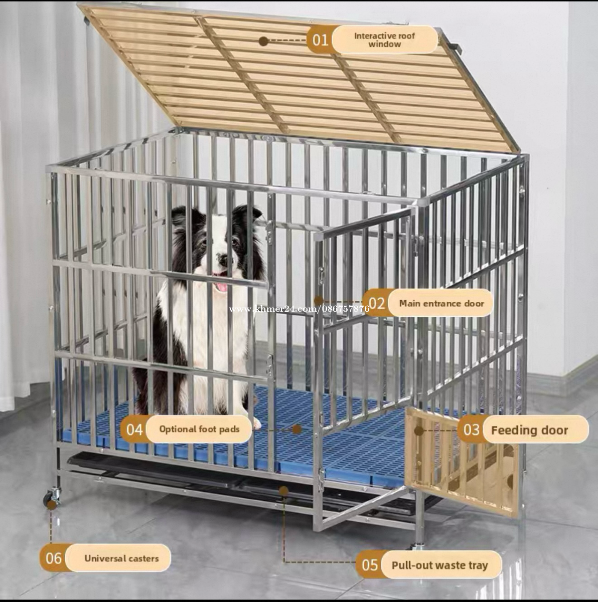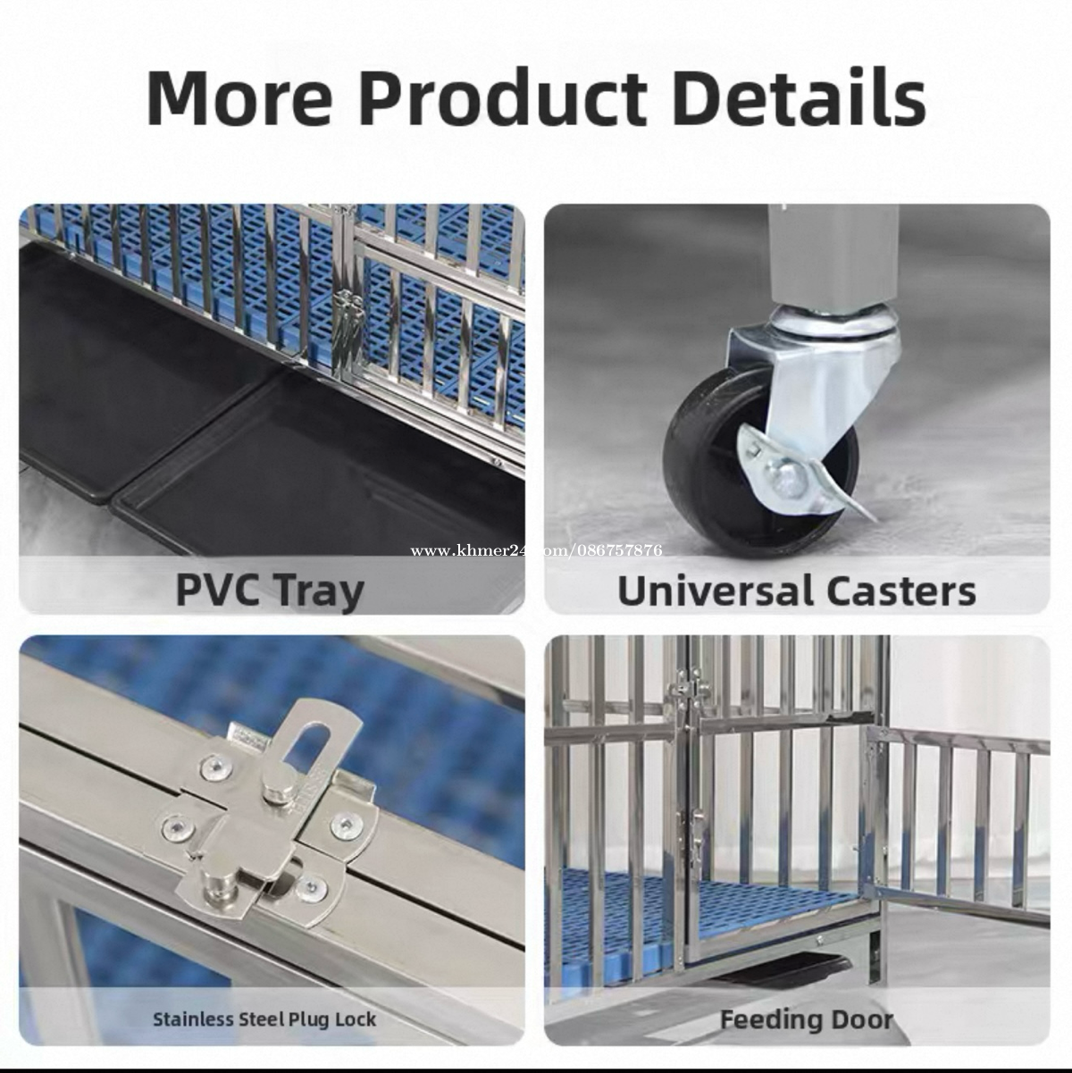 ទ្រុងដែកអុីណុកខ្នាតធំសម្រាប់សត្វចិញ្ចឹមគីឡូធ្ងន់ 🐕 🐈 🐖 ទំហំ បណ្តោយ1.47m*ទទឹង95m*កម្ពស់1.15m ទ្រង់នៅស្អាត 99% 👉🏻បញ្ជាក់:ទ្រុងអាចបត់បាន&មិនចេះច្រេះ ☎️ Tel/Telegram: 069363xxxClick To Call