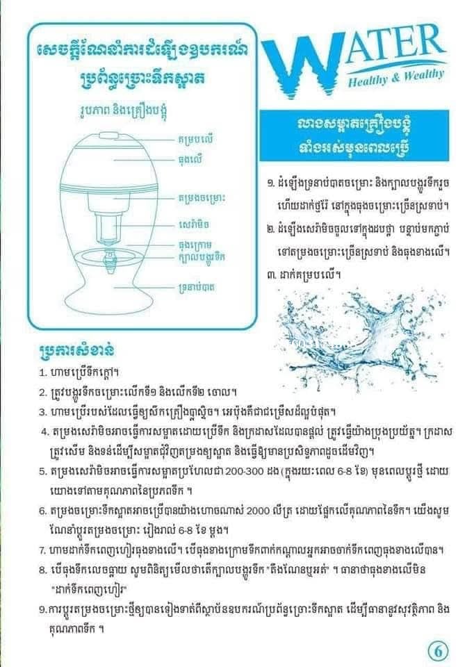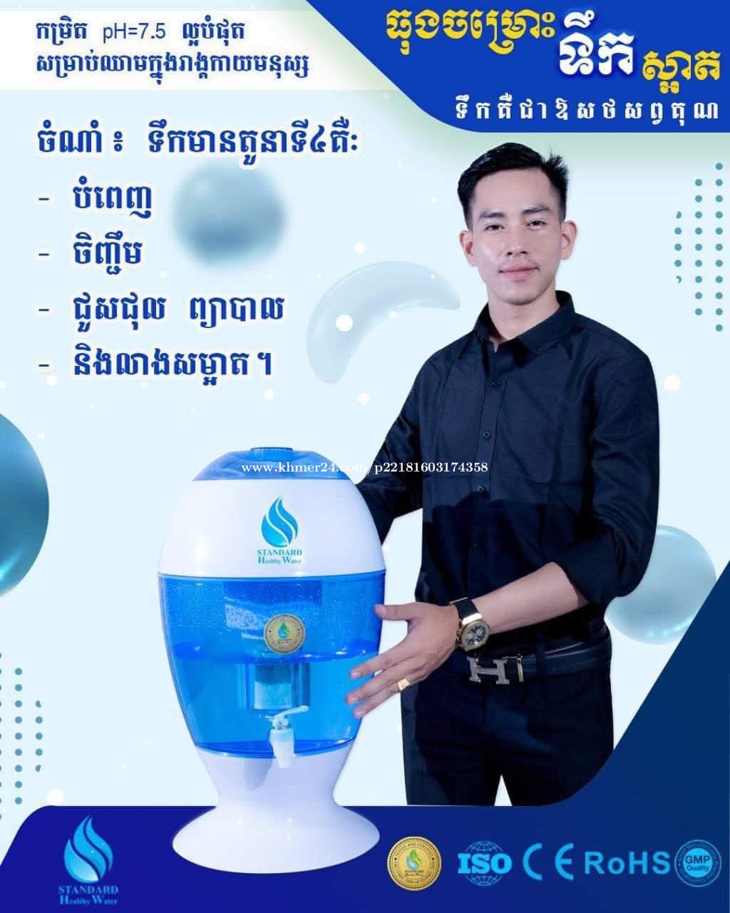 | ធុងចម្រុះទឹកស្អាត | 👉អត្ថប្រយោជន៍នៃការផឹកទឹកស្អាត 1-ជួយធ្វឱ្យសម្រកទម្ងន់តាមបែបធម្មជាតិ 2-ព្យាបាលតាមបែបធ្មជាត ចំពោះការឈឺក្បាល 3-ជួយឱ្យអ្នកមើលទៅក្មេងជាងវ័យ នឹងស្បែកមានសុខភាពល្អ 4-ជំរុញឱ្យអ្នកមានភាពជោគជ័យនឹងការងារ 5-ធ្វើឱ្យការហាត់ប្រាណកាន់តែល្អប្រសើរ 6-ជួយដល់ប្រព័ន្ធរំលាយអាហារ និងបញ្ហាទល់លាមក 7-ទប់ស្កាត់បញ្ហាគ្រេចថ្លោះ និងរមួលក្រពើ 8-មានសុខភាពល្អ មិនសូវមានជំងឺ 9-បន្ធូរនូវអារម្មណ៍នៃការអស់កម្លាំង 10-ធ្វើអោយមានអារម្មណ៍ល្អ 11-កាត់បន្ថយការប្រឈមនឹងជំហឺមហារីក 12-ជួយបំបាត់ការស្រេចទឹក បំពេញសារជាតិទឹកក្នុងរាងកាយ 13-ជួយធ្វើឱ្យរាងកាយរបស់យើងមានតុល្យភាព 14-ជួយធ្វើឱ្យចលនារាងកាយកាន់តែប្រសើរឡើង 👉មានតួនាទី 💧កម្ចាត់សារធាតុពុល 💧កម្ចាត់បាត់តេរី 💧កម្ចាត់មេរោគ 💧កម្ចាត់វីរុស 💧បង្កើនកម្រិត pH ល្អបំផុតសម្រាប់សុខភាព 💧និងអត្ថប្រយោជន៍ជាច្រើនទៀត......
