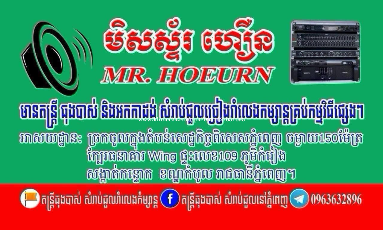 ជំរាប់សួរ!លោកពូអ្នកមីងបងប្អូន ដែរមានកម្មវិធីផេ្សងៗ ហើយត្រូវកាជួលតន្រ្តី អាចទំនាក់ទំនង់មកខាងយើងបាន។ 0963632xxxClick To Call/0978139xxxClick To Call/095859xxxClick To Call