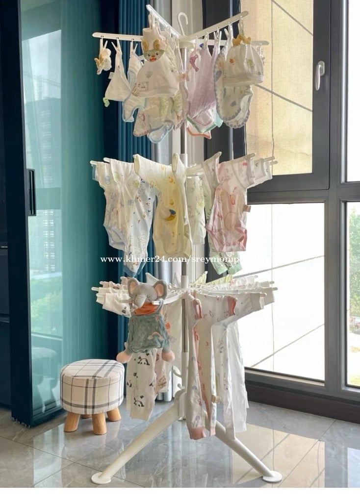 ធ្នើរសម្លៀកបំពាក់ទារក ៣ជាន់ អាចបត់បាន ច្រើនស្រទាប់ ស័ក្តិសមសម្រាប់ដាក់នៅលើយ៉រ