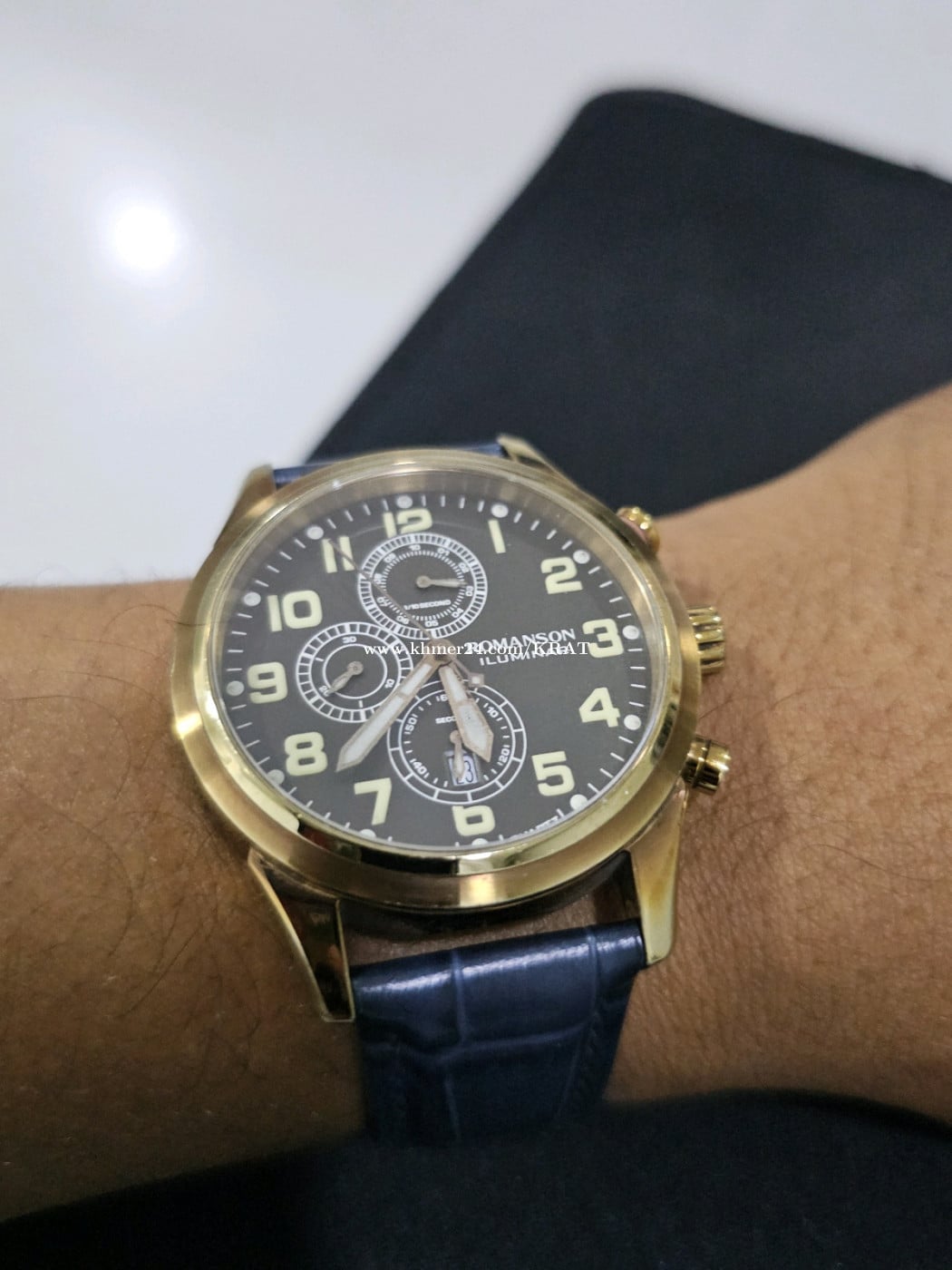RE-SELL ROMANSON Only 150$ Second Hand Watch But New95% -Original 100% Swiss - ប្រភេទ Sapphire Crystal (កញ្ចក់មិនឆ្កូត) - ត្រនិចមានជាតិបាត យប់ឡើងភ្លឺ - ប្រើថ្ម Calendar : Day Stainless Steel Water Resistant 5ATM