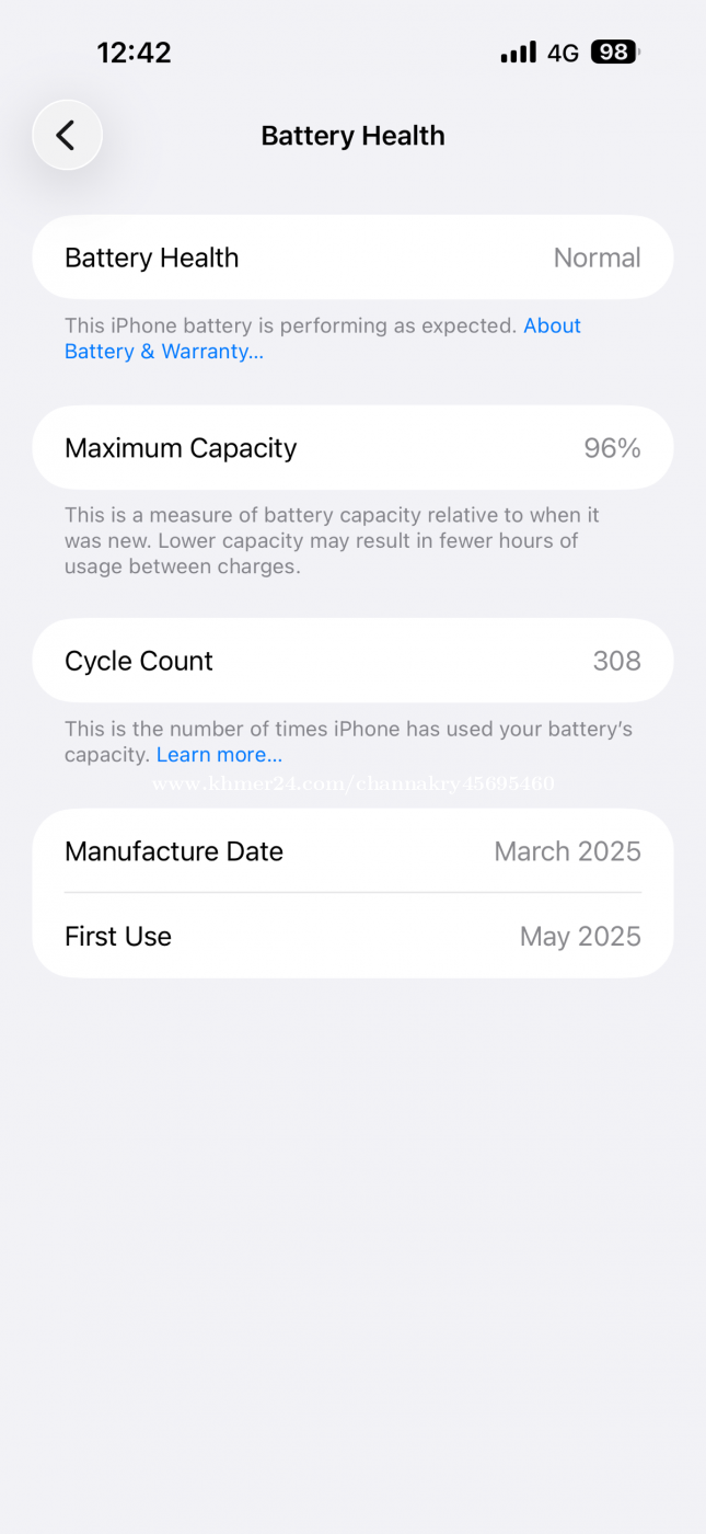 កាលទិញថ្មី ប្រអប់ ម្ចាស់ដើម គ្មានស្នាម នៅស្អាតណាស់ មានប្រអប់ មានខ្សែរសុីន នៅធានា