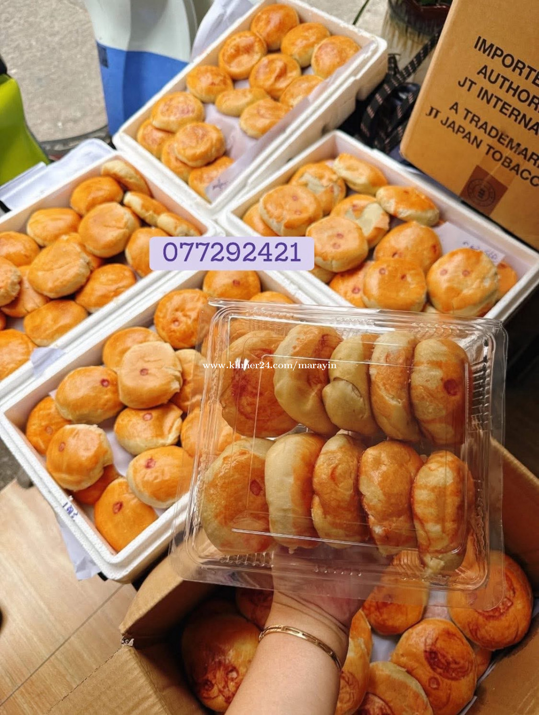 នំដែលលក់ដាច់ប្រចាំថ្ងៃ នំពារ3រសជាតិ (ដូងត្រាវសណ្តែក) សំបកស្តេីងស្នូលច្រេីននំដុតថ្មីៗរាល់ថ្ងៃ ដុតដោយប្រេីធ្យូង 👉1ប្រអប់មាន10នំ អាចលាយរសជាតិបាន #តេលេក្រាម077292xxxClick To Call #ទីតាំងភ្នំពេញផ្ញើរគ្រប់25ខេត្តក្រុង #បោះដុំលក់រាយម៉ូយៗចង់យកលក់បន្ត #មានសេវាទទួលវេចខ្ចប់ទៅក្រៅប្រទេស