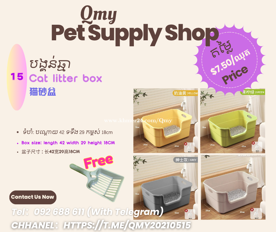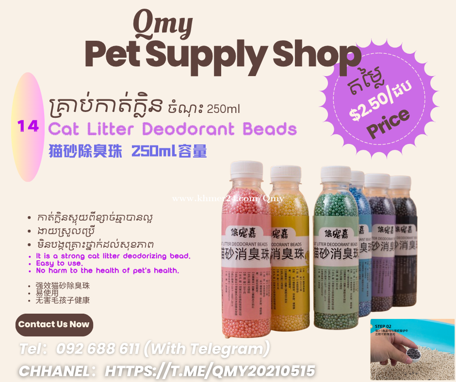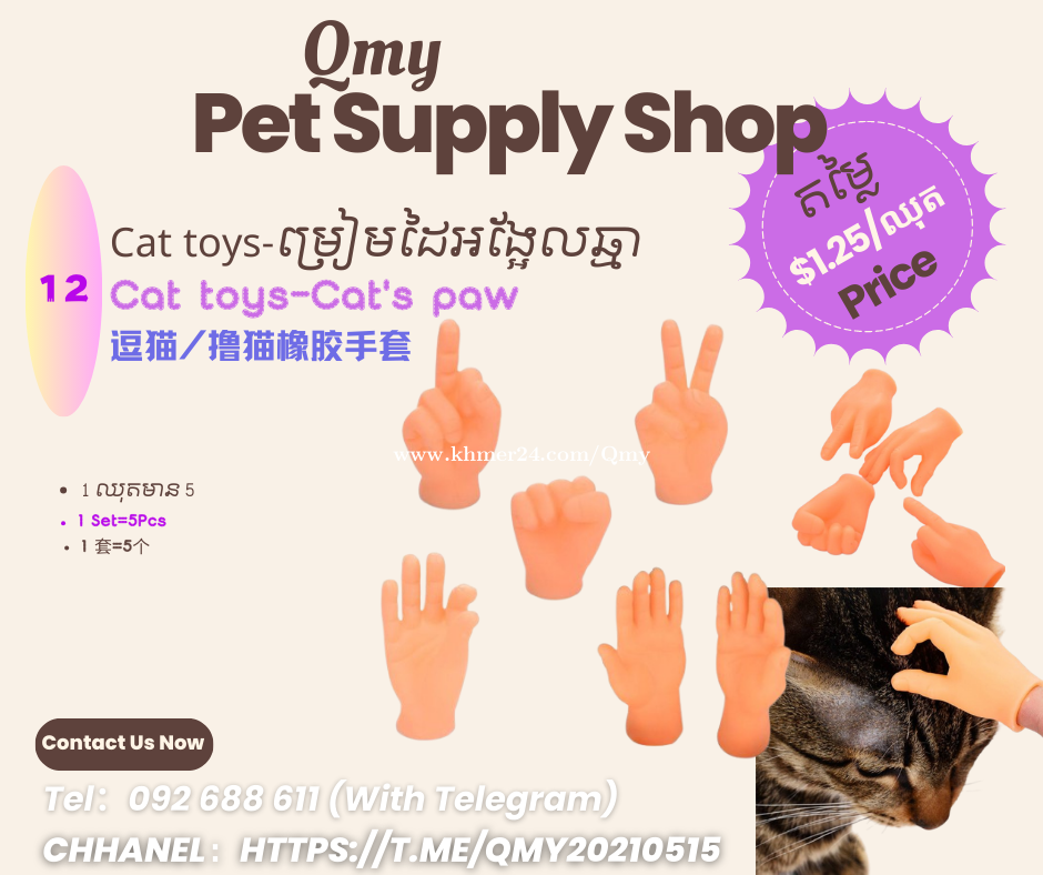 【1】បង្គន់ឆ្មា=猫砂盆=Cat litter box(1Set=$7.50 ) 【2】គ្រាប់កាត់ក្លិន=猫砂除臭珠=TCat Litter Deodorant Beads(250ml=$2.50 ) 【3】ម្រៀមដៃជ័រអង្អែលឆ្មា=橡胶玩具手套=Cat toys-Cat's paw(1Set=$1.25) 【4】Cat toys ត្រីនិងបាល់=玩具=Toys(1 Set=$1.50) 【5】អាវឆ្មា=毛小孩衣衣(1pc=$1.50) M=2Kg~3.5Kg L=3.5Kg~5Kg