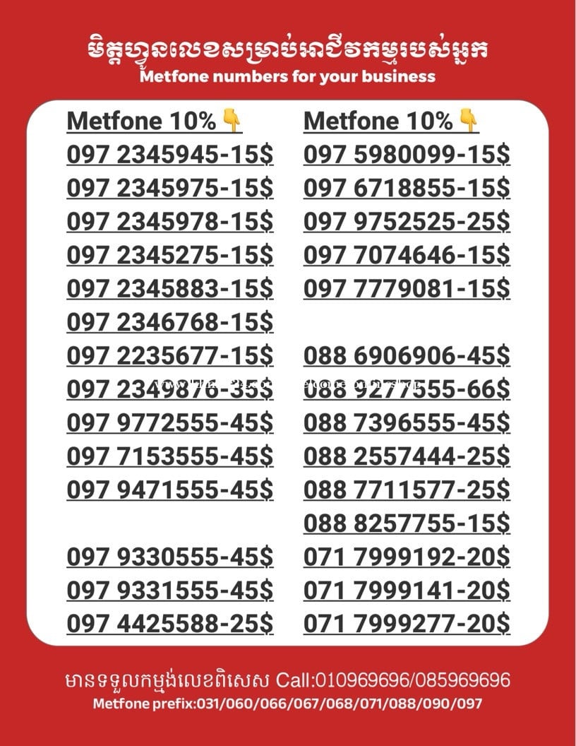 មានលក់លេខពិសេស មានទទួលកម្មង់លេខពិសេស មានលក់ម៉ាស៊ីនព្រីនឡាបែល មានលក់ម៉ាស៊ីនព្រីនវិក័យប័ត្រ មានលក់សម្ភារៈប្រើប្រាស់ក្នុងគ្រួសារ Smart Prime II 1=30$ Smart hero 1=40$ ទូរសព្ទថ្មីក្នុងប្រអប់ លក់ធូរៗរហូតអស់ពីស្តុក អាចប្រើជាឧបករណ៍សម្រាប់ស៊ែរ wifi បាន ទំនាក់ទំនង(ខ្មែរ | English | 中文):010969696 | 085969696 Telegram: https://t.me/W9696 Telegram group: https://t.me/konkonnada អាសយដ្ឋាន:ផ្ទះលេខ២៣ ផ្លូវបេតុងលេខ១ ភូមិទួលពង្រ សង្កាត់ចោមចៅ ខណ្ឌពោធិ៍សែនជ័យ រាជធានីភ្នំពេញ ទីតាំង https://goo.gl/maps/8moqW4iTHUfJEvWQ9 ដើម្បីស្វែងរកលេខអាជីវកម្មដែលលោកអ្នកពេញចិត្ត សូមចូលទៅកាន់:https://www.khmer24.com/Welcome-onlineshop