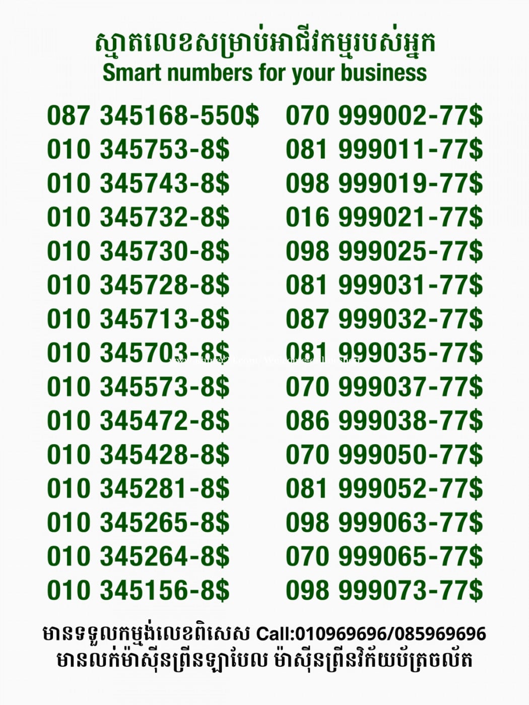មានលក់លេខពិសេស មានទទួលកម្មង់លេខពិសេស មានលក់ម៉ាស៊ីនព្រីនឡាបែល មានលក់ម៉ាស៊ីនព្រីនវិក័យប័ត្រ មានលក់សម្ភារៈប្រើប្រាស់ក្នុងគ្រួសារ Smart Prime II 1=30$ Smart hero 1=40$ ទូរសព្ទថ្មីក្នុងប្រអប់ លក់ធូរៗរហូតអស់ពីស្តុក អាចប្រើជាឧបករណ៍សម្រាប់ស៊ែរ wifi បាន ទំនាក់ទំនង(ខ្មែរ | English | 中文):010969696 | 085969696 Telegram: https://t.me/W9696 Telegram group: https://t.me/konkonnada អាសយដ្ឋាន:ផ្ទះលេខ២៣ ផ្លូវបេតុងលេខ១ ភូមិទួលពង្រ សង្កាត់ចោមចៅ ខណ្ឌពោធិ៍សែនជ័យ រាជធានីភ្នំពេញ ទីតាំង https://goo.gl/maps/8moqW4iTHUfJEvWQ9 ដើម្បីស្វែងរកលេខអាជីវកម្មដែលលោកអ្នកពេញចិត្ត សូមចូលទៅកាន់:https://www.khmer24.com/Welcome-onlineshop